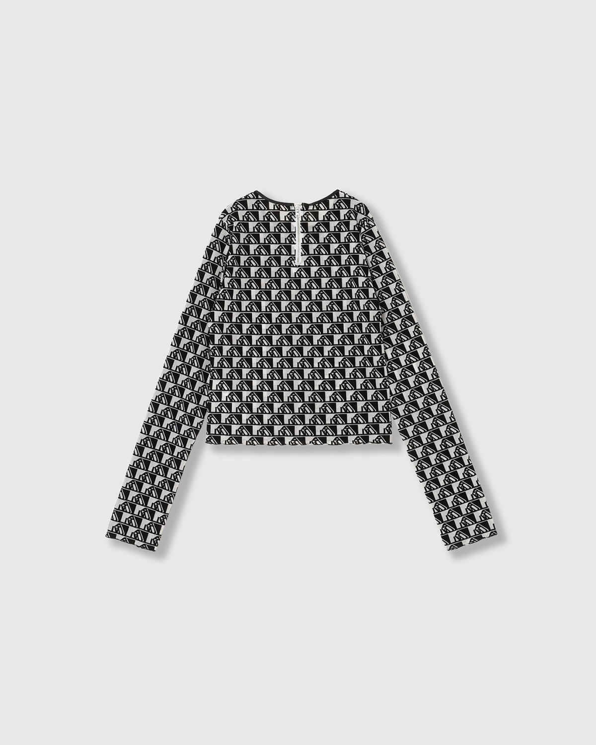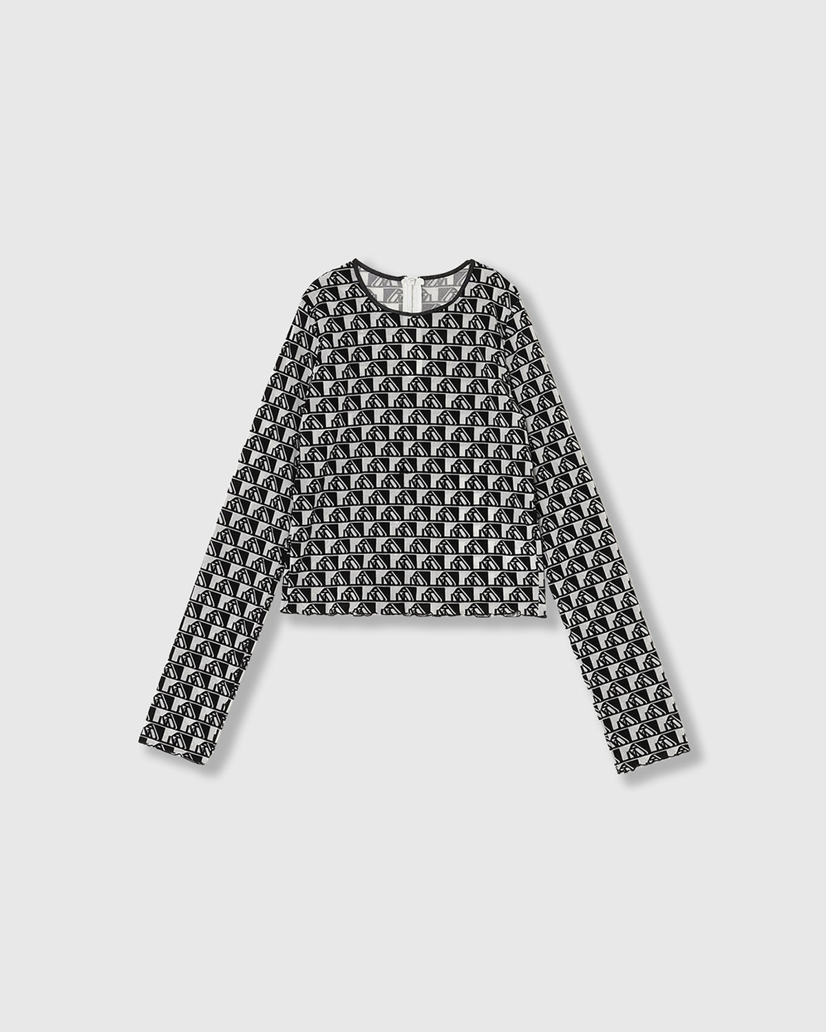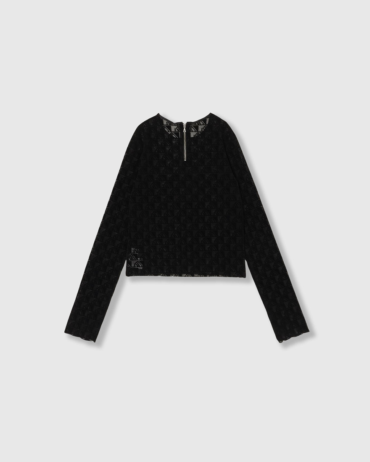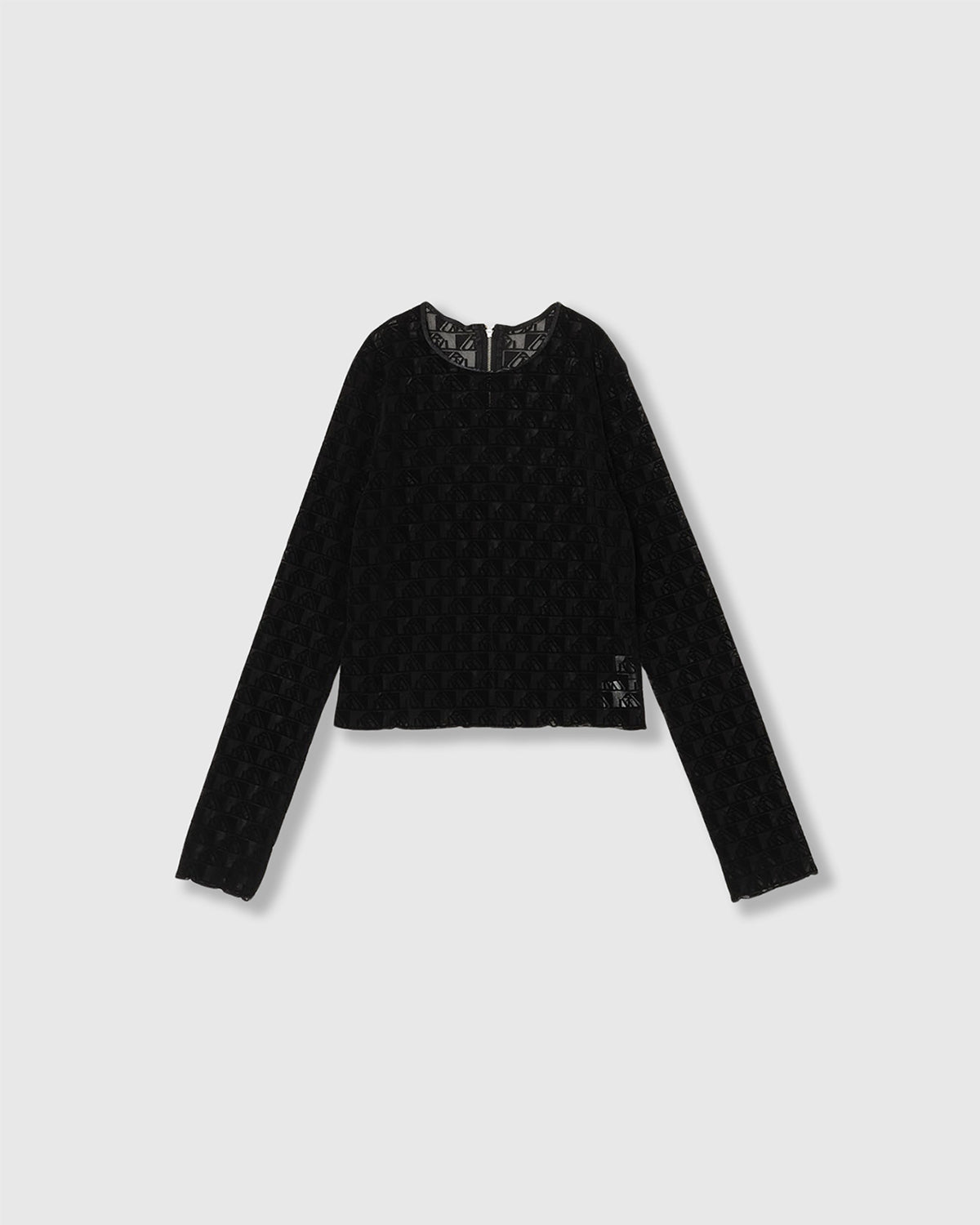 MONOGRAM FLOCKY PRINT TULLE CROPPED TOPS