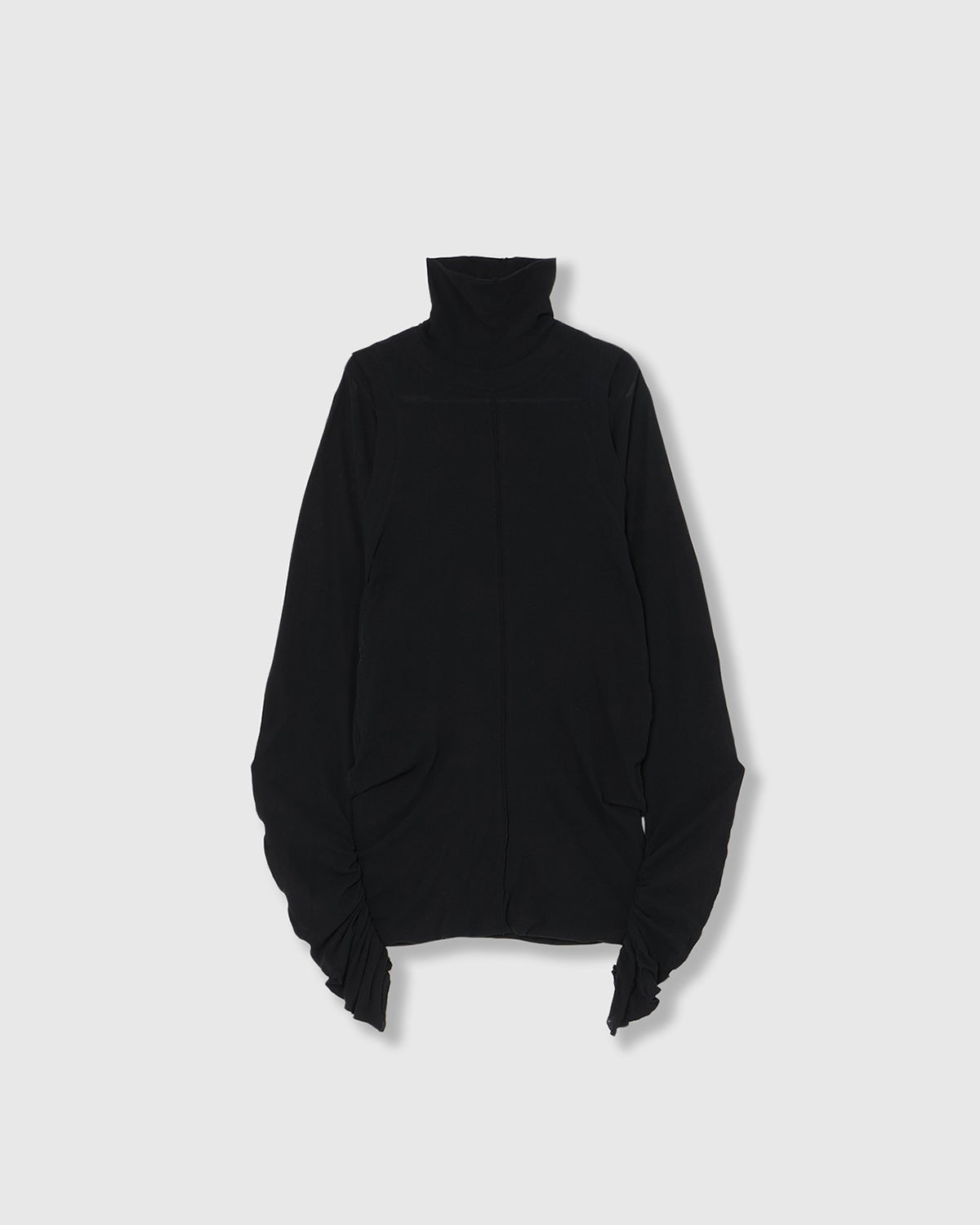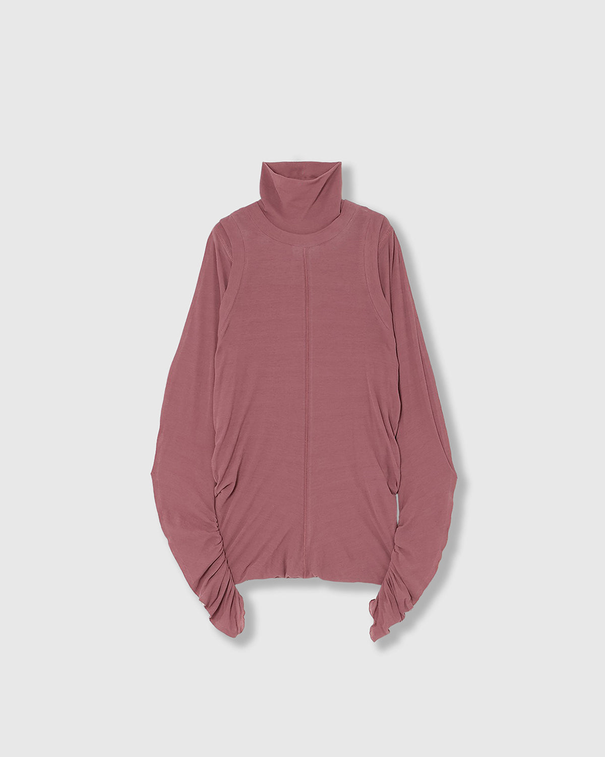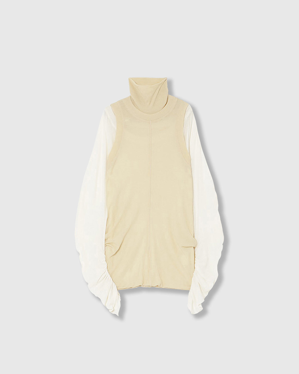 シアーカットソーのトップスをレイヤードしたような、デザイン性の高い一枚。