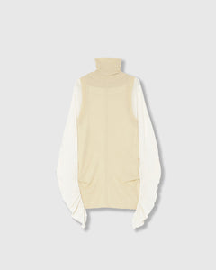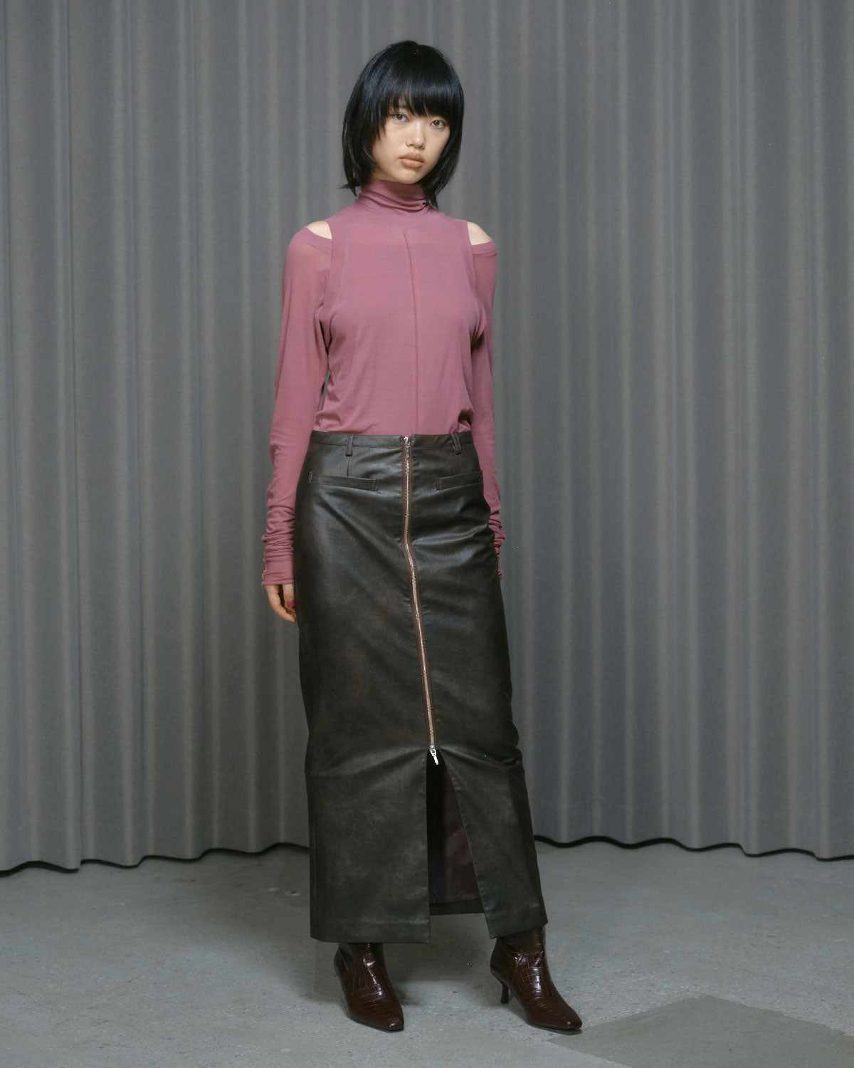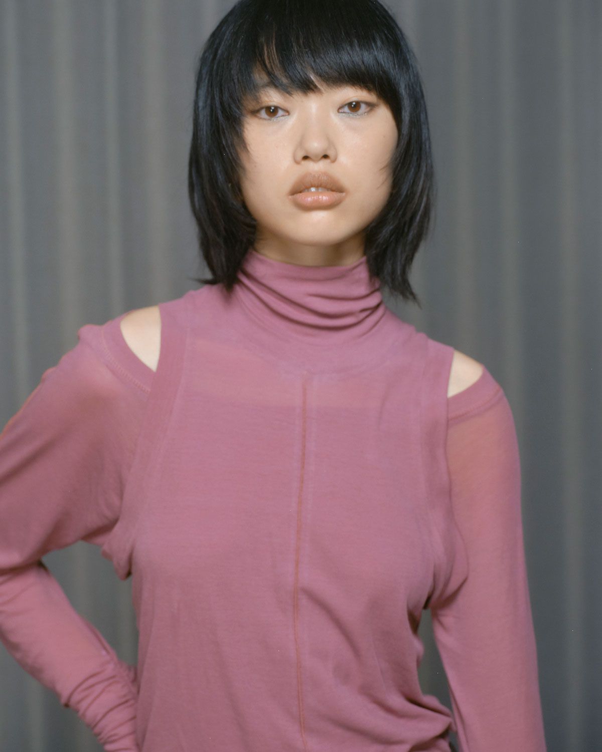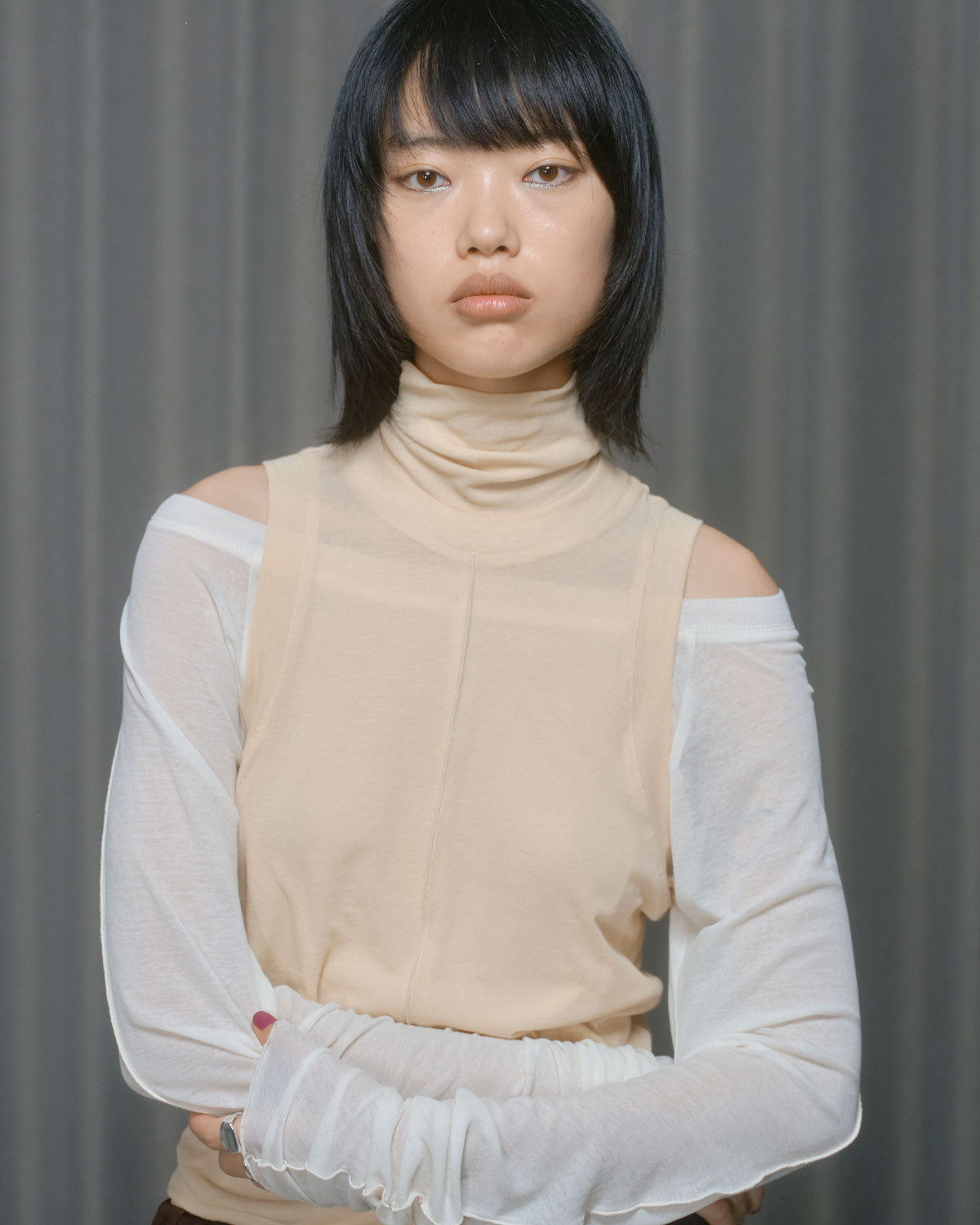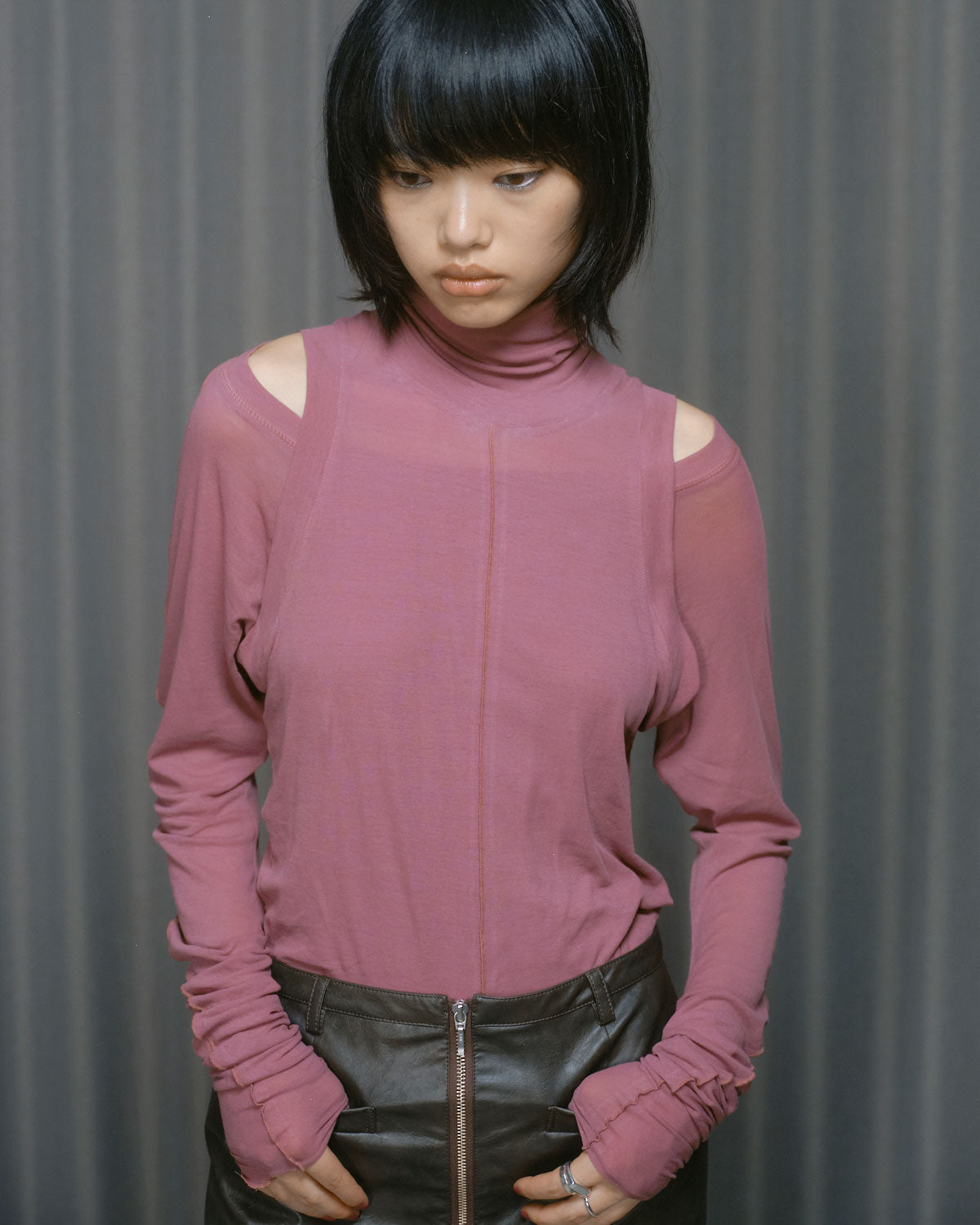 カッティングやシルエットにこだわった2つのトップスを重ねたようなデザインが、TTMらしい1枚。透け感のある素材同士が重なり合うことで生まれる、色の奥行きや肌見せのニュアンスが美しく、スタイリングに抜け感をプラスします。