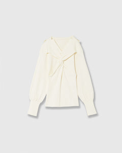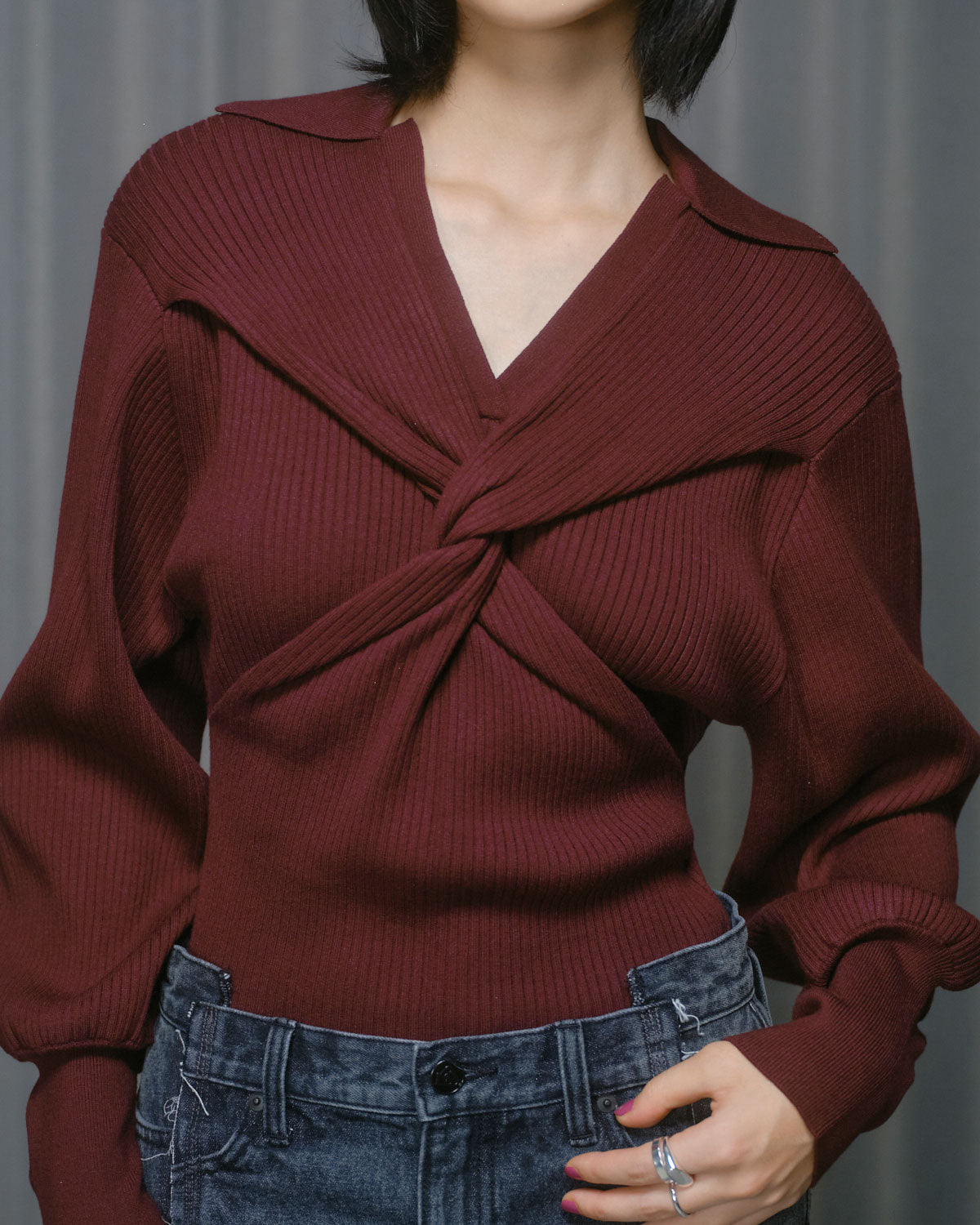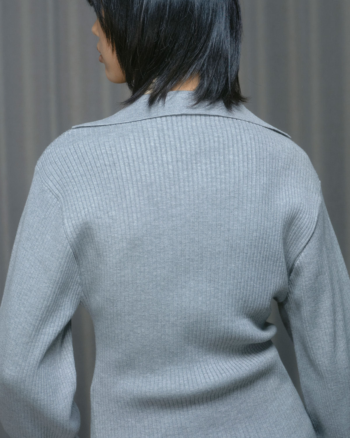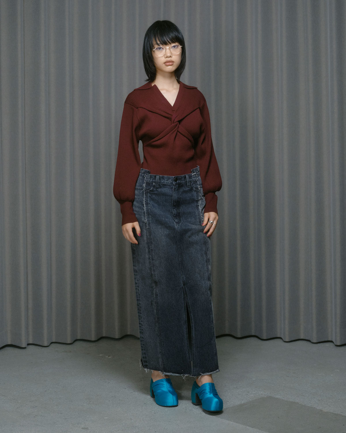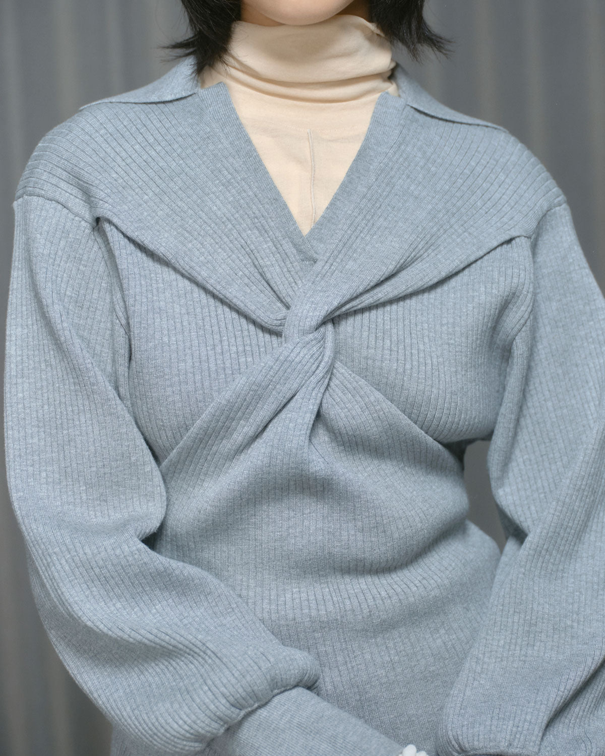 長めのリブ袖が生み出すボリュームスリーブは、1枚で着ても存在感があります。