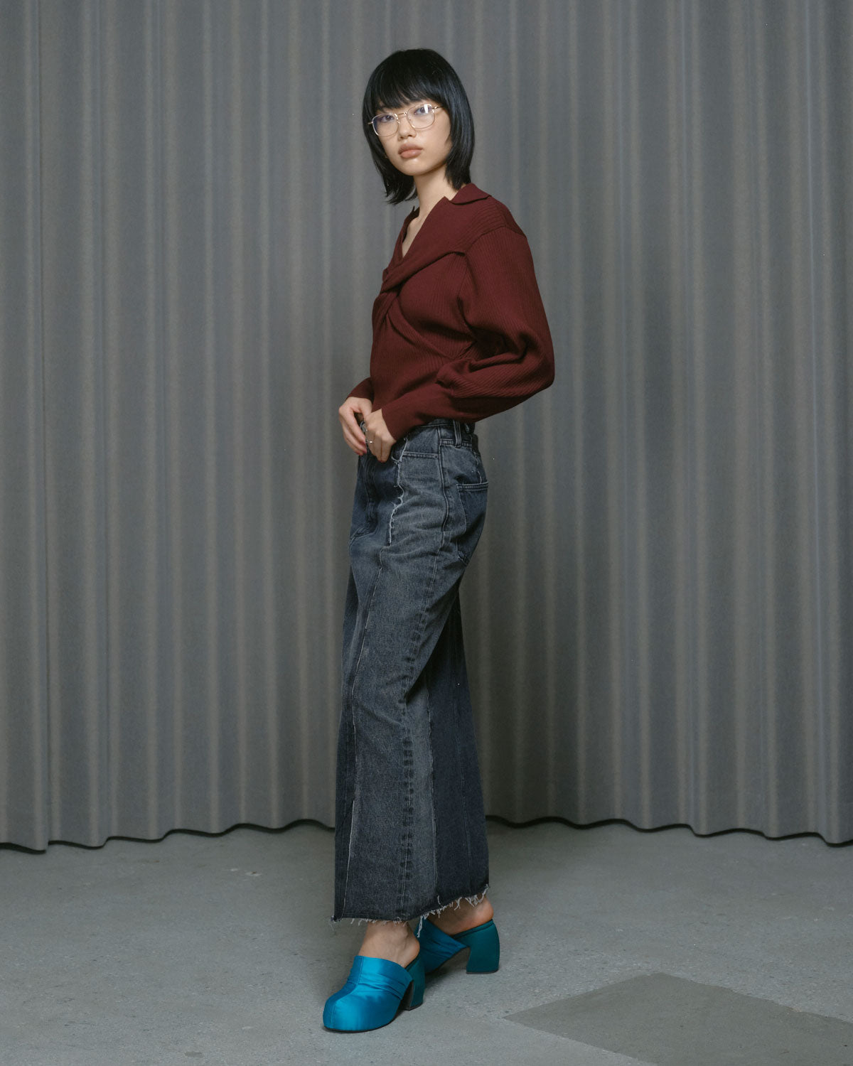 タートルやインナーを重ねて、レイヤードのスタイリングも楽しめます。