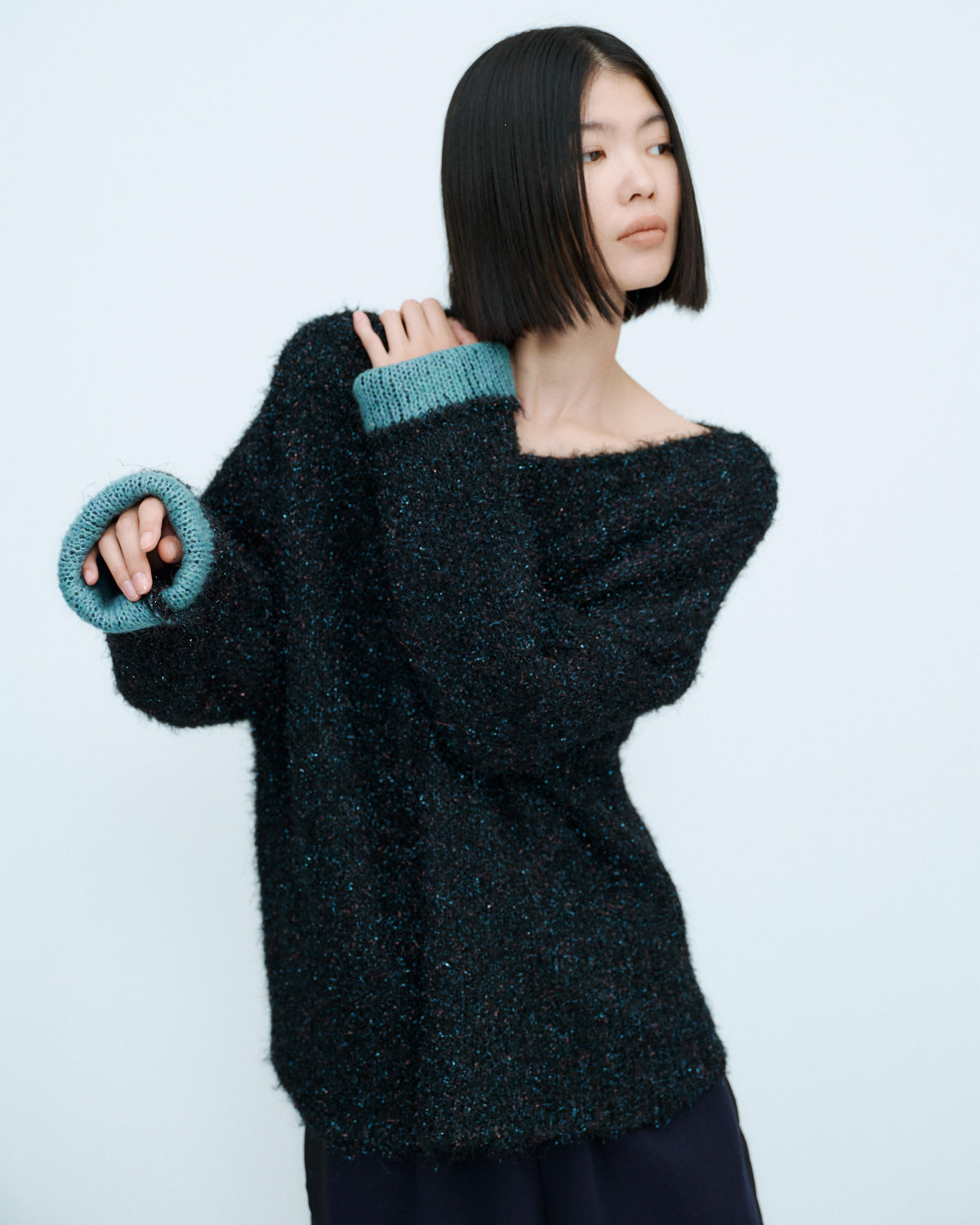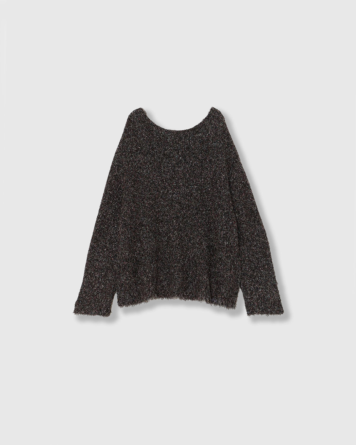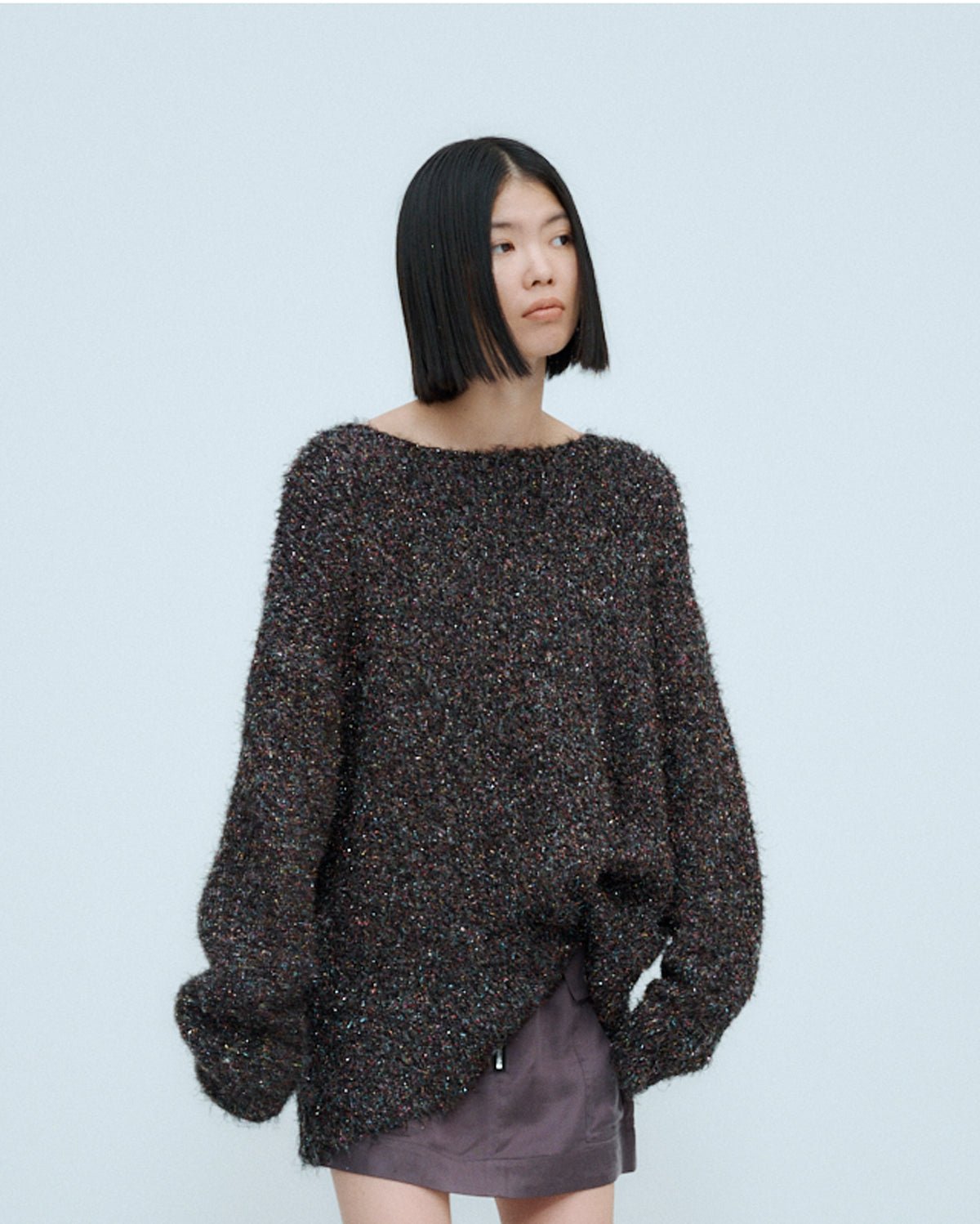 ラメファーがしっかりときらめく、ブランドらしい存在感のあるニットプルオーバー。