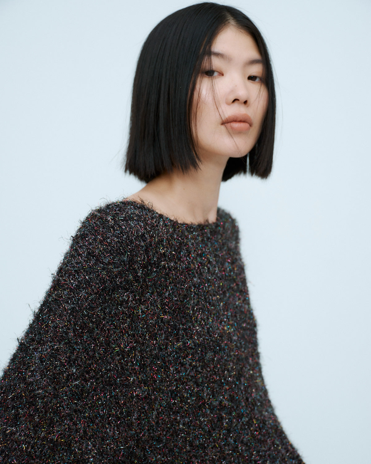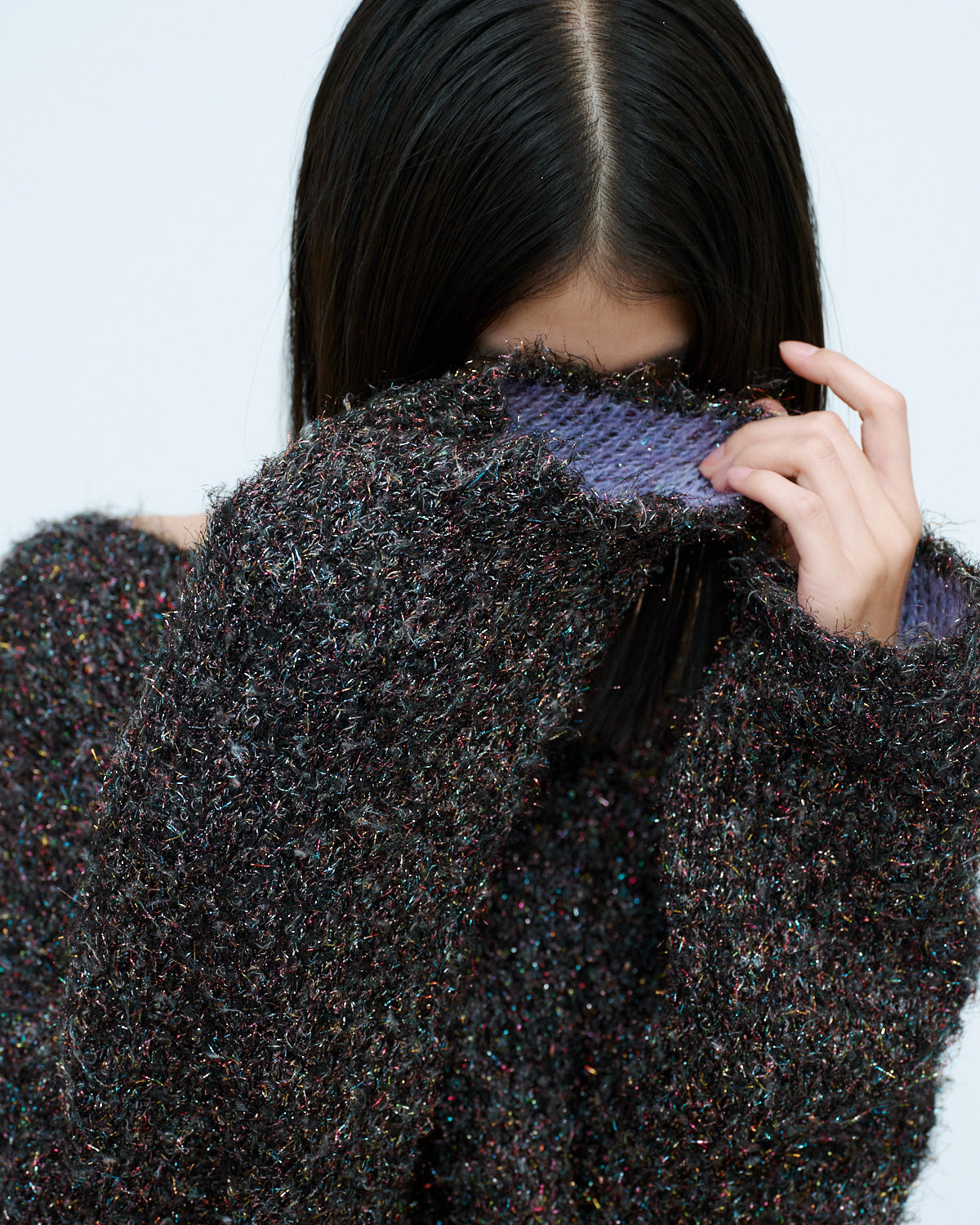 日本特有の繊細なラメ糸とコットン糸を組み合わせ、上品なきらめきを残しながら、柔らかさが特徴的な上品なファーに仕立てています。