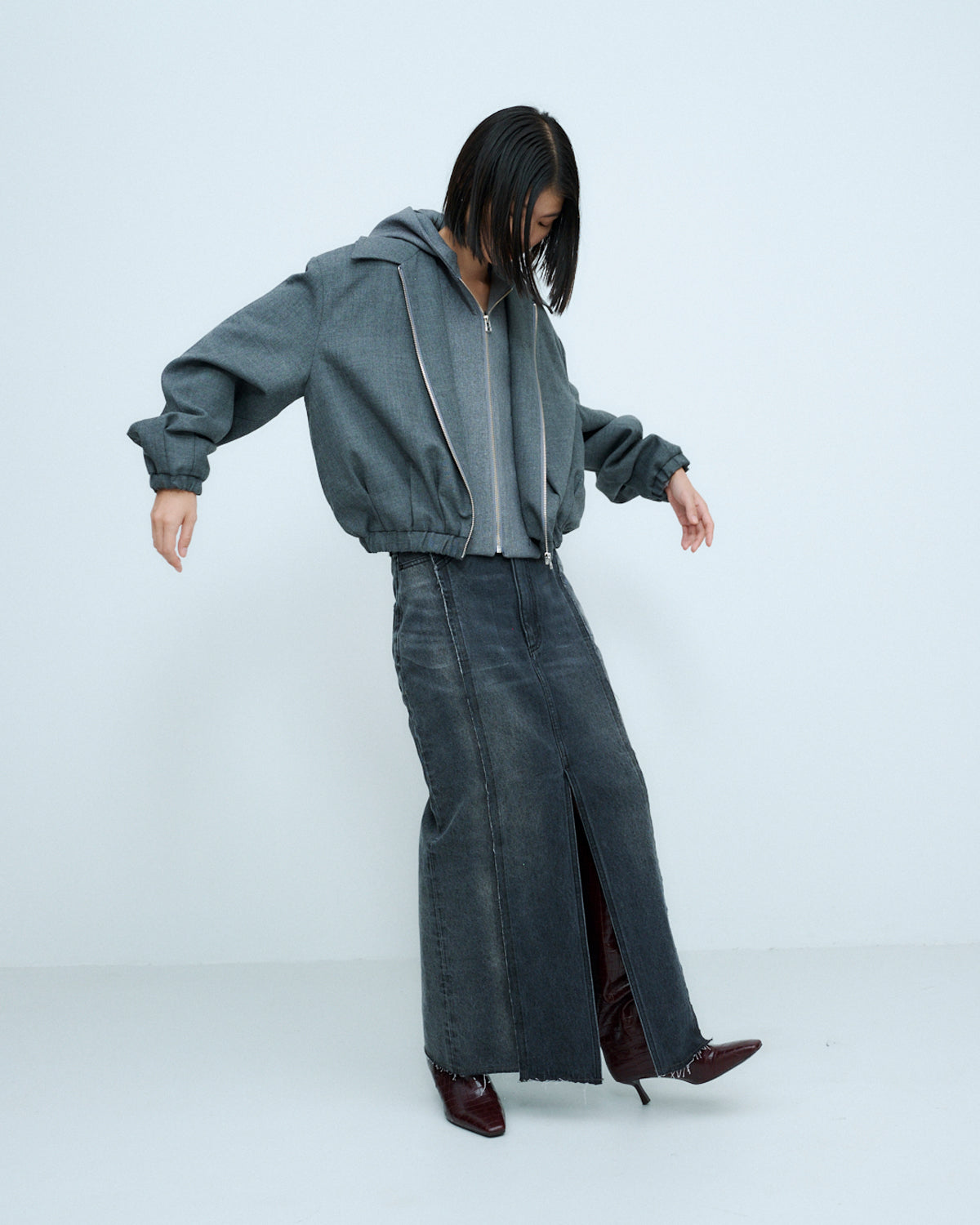 すっきりとしたロングシルエットで、個性を効かせながらもバランスよく着こなせる一枚です。
