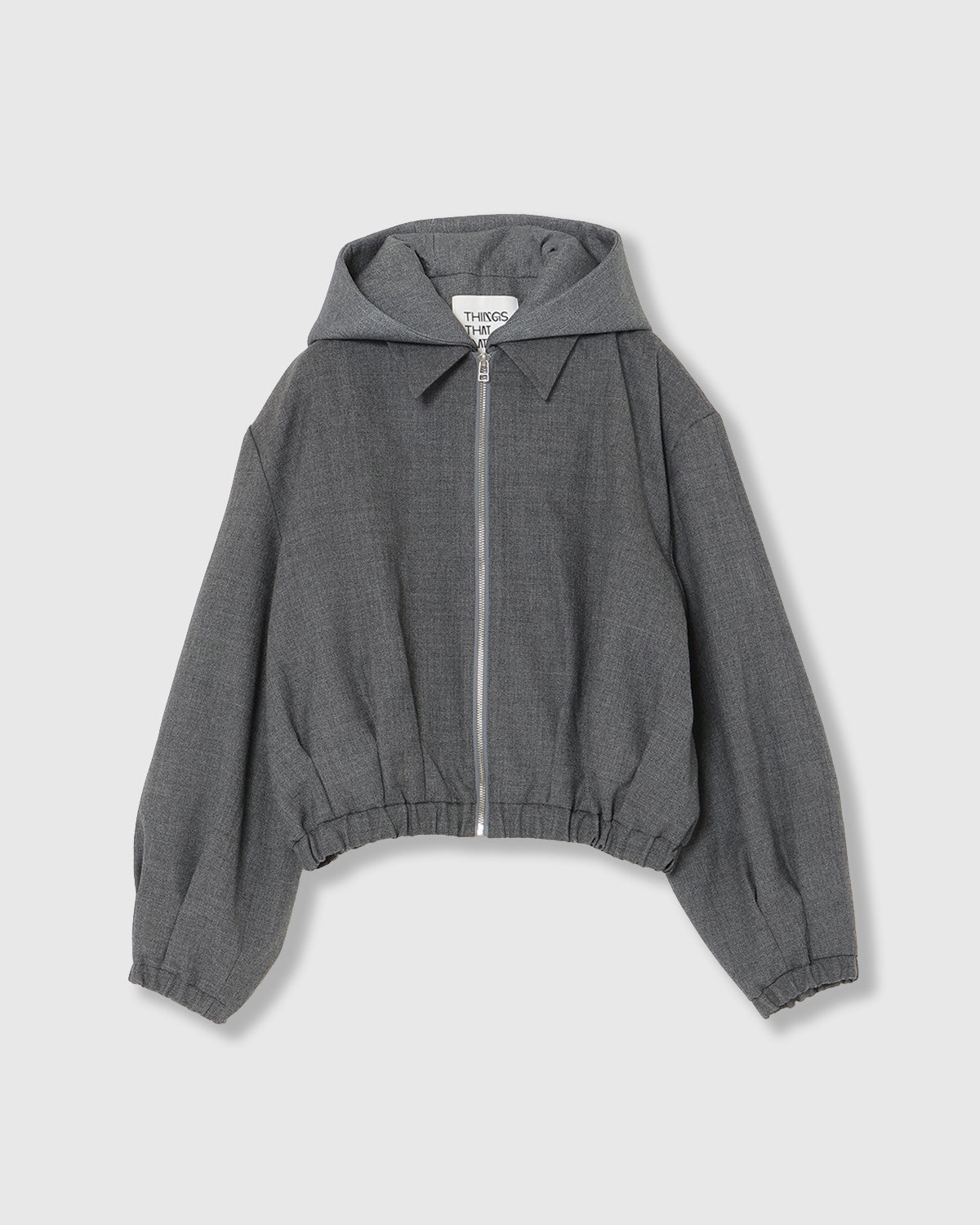 レイヤード風のフードが取り外せる、ドライウール素材のジャケット。