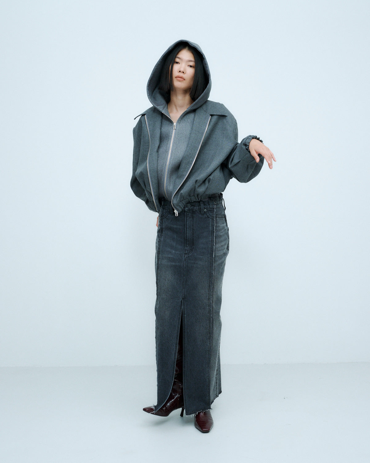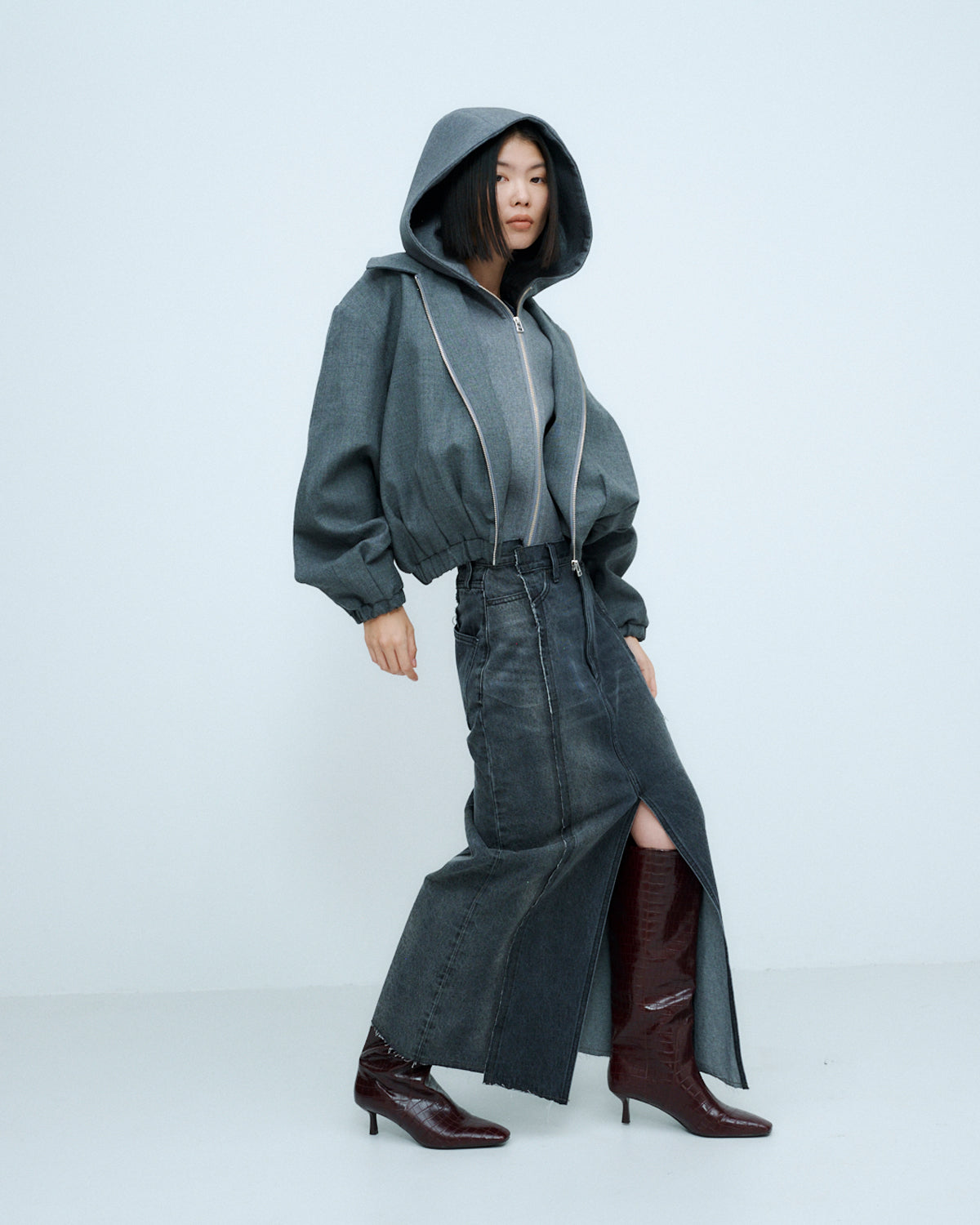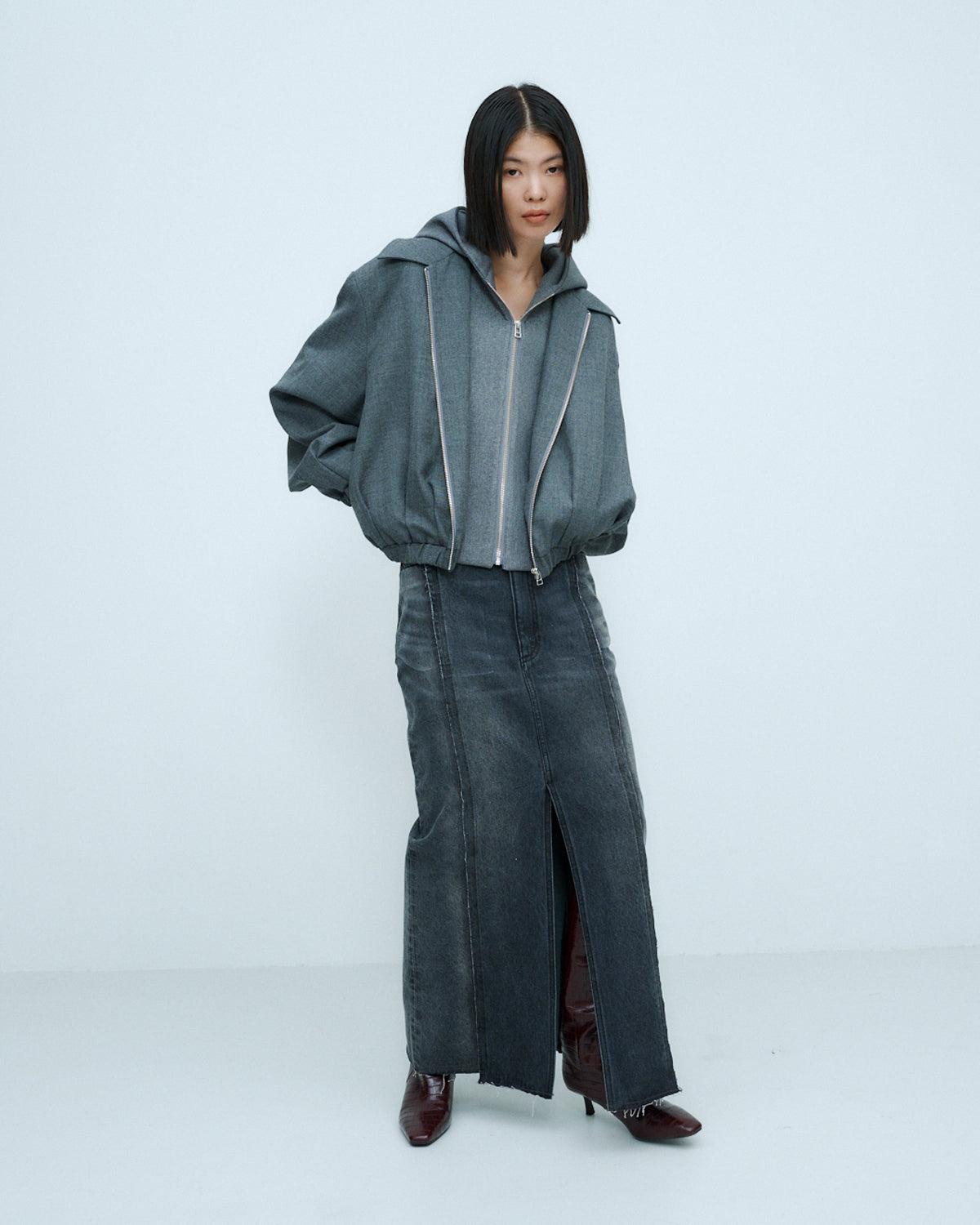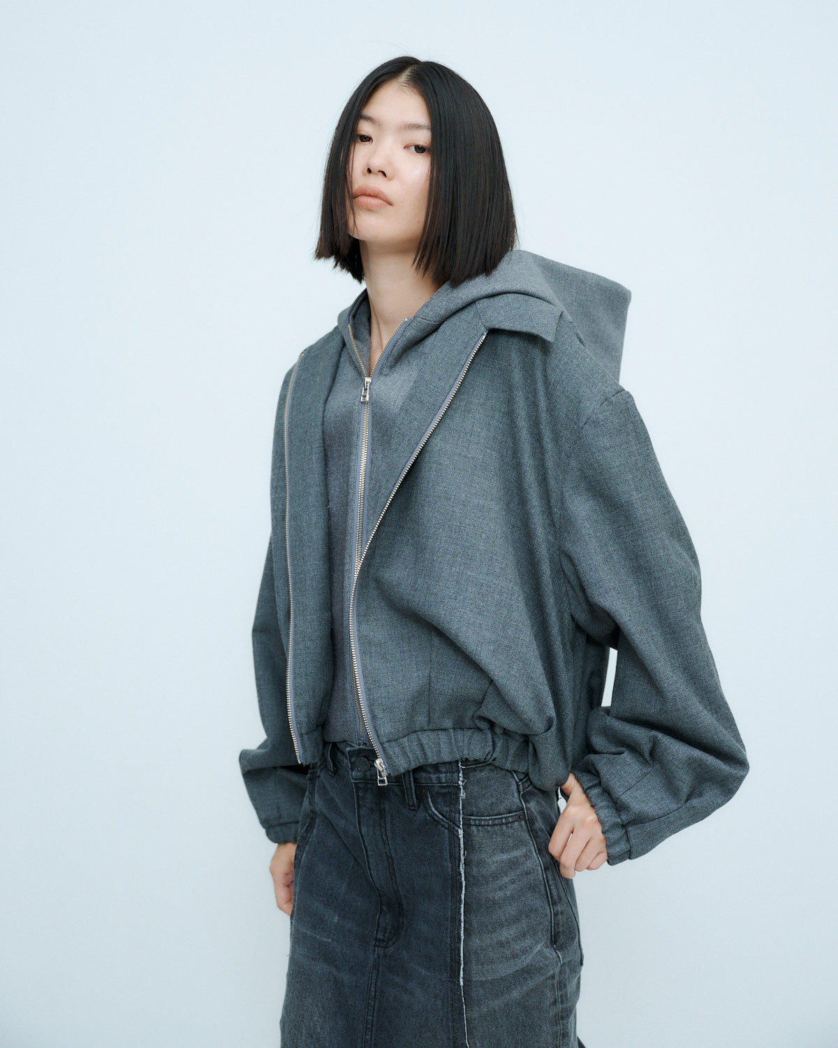 同系色でまとめたフード部分は取り外し可能で、気分やシーンに合わせて表情を変えられる一着です。季節やスタイリングに応じて、幅広い着こなしをお楽しみいただけます。