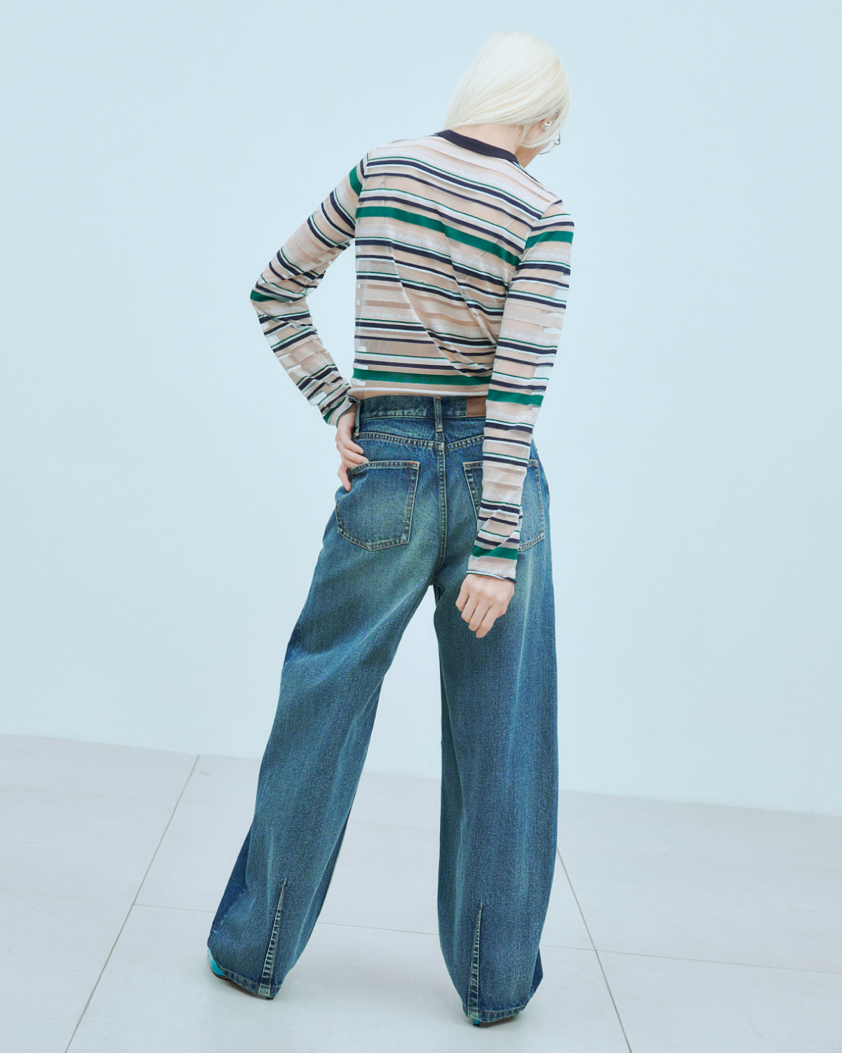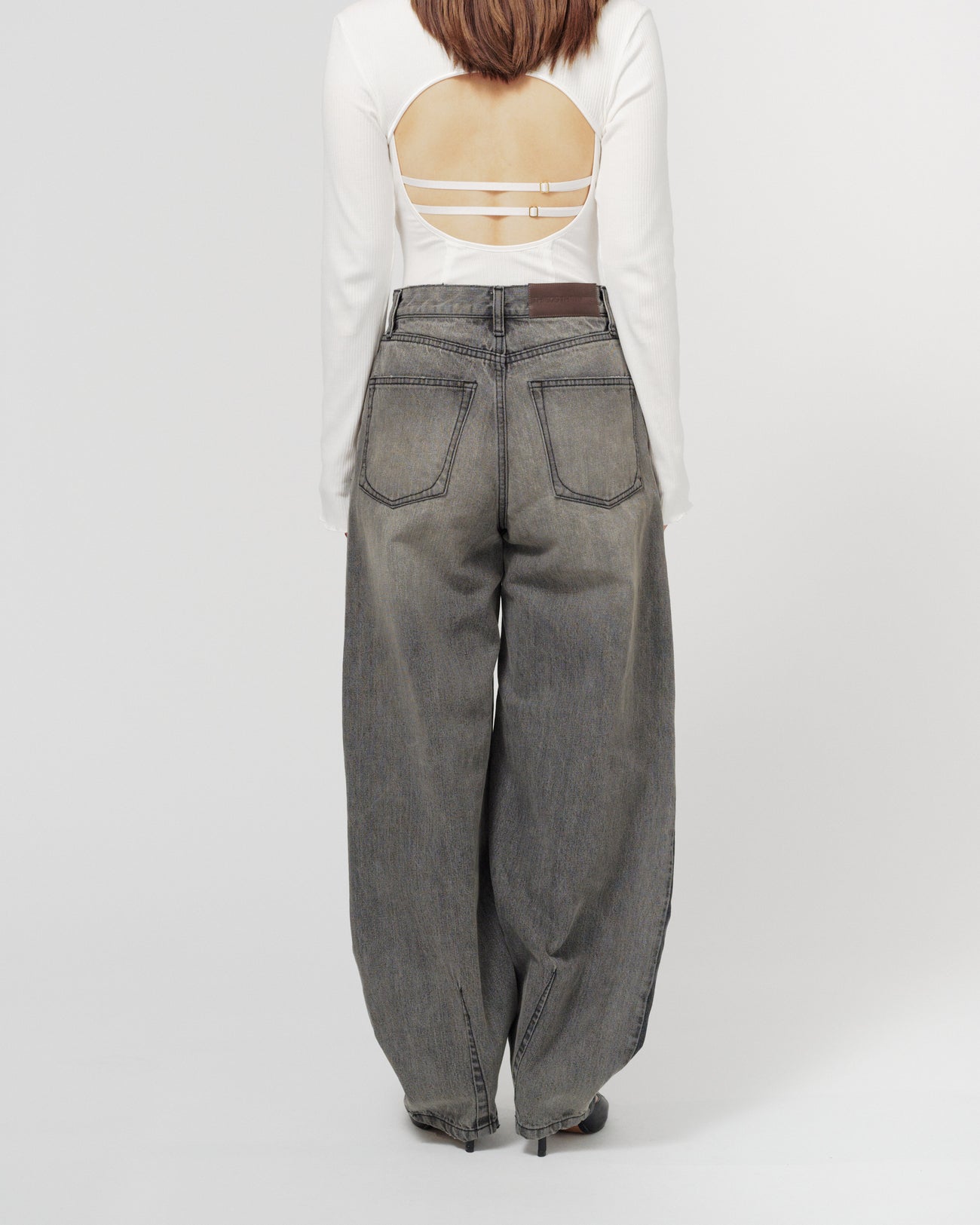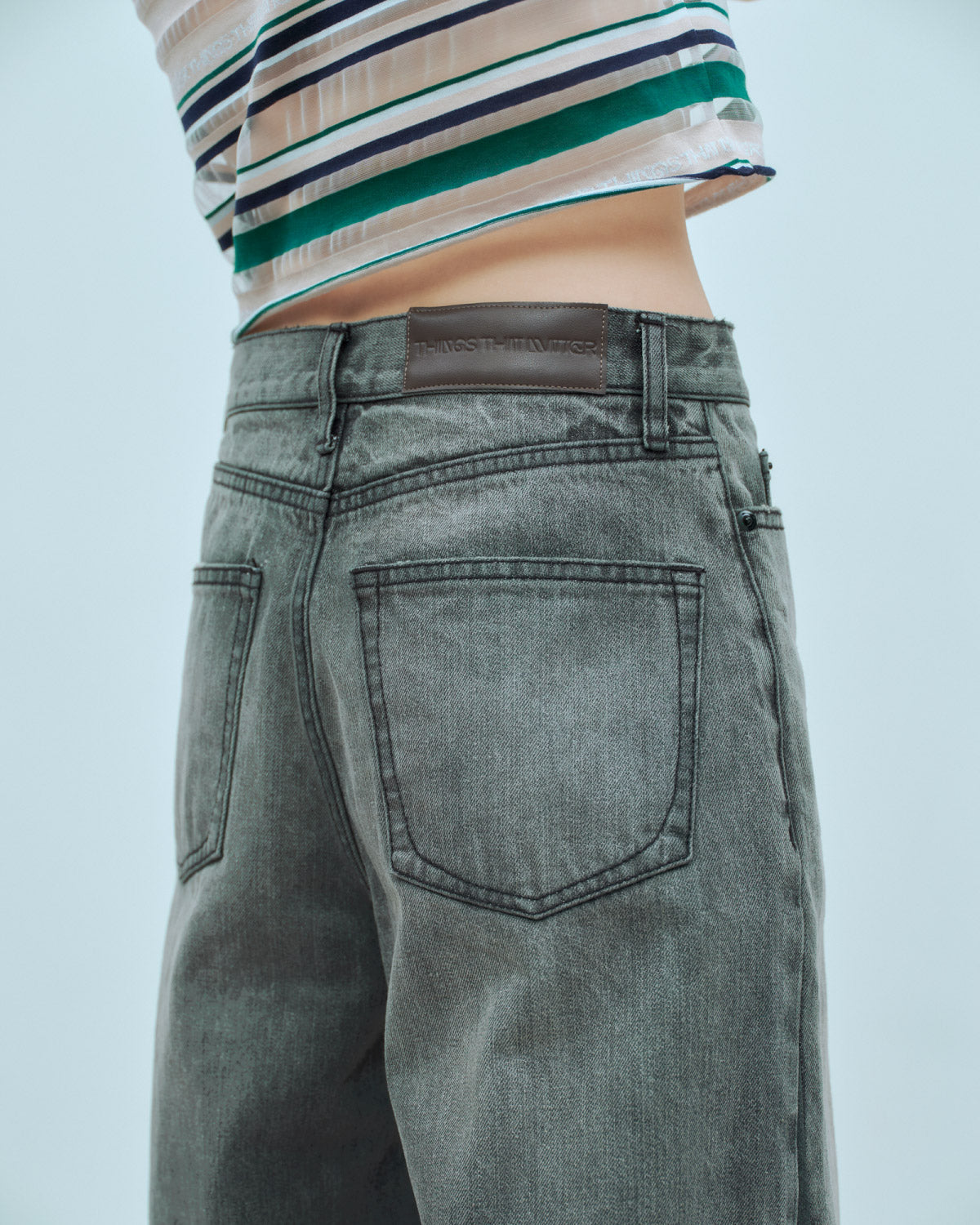 ウエストに付いているTTMロゴの型押しパッチがアクセント。新しいフォルムながらもデニムらしいカジュアル感を損なわない一本です。