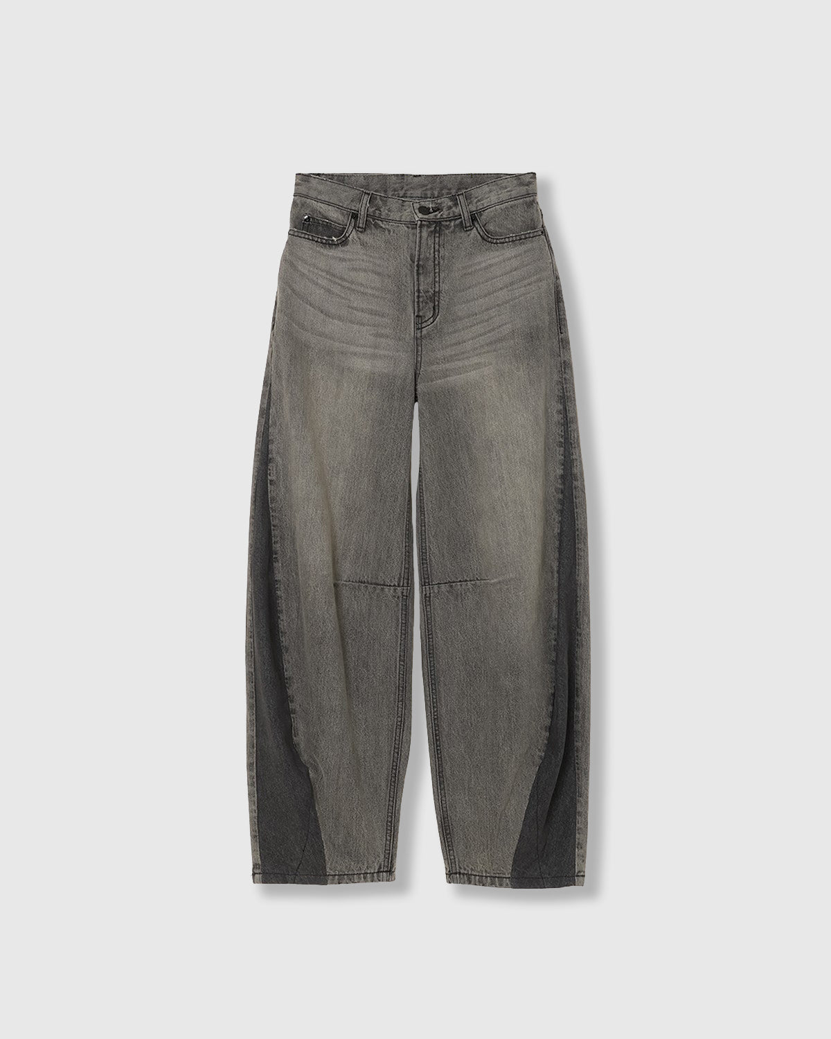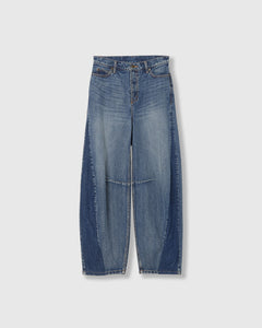 リメイク風の切り替えデザインとダーツを取り入れた、全体的に丸みのあるシルエットが特徴のデニム。内側に入ったダーツでカーブのシルエットになっておりスタイリングに程よい動きをプラスします。
