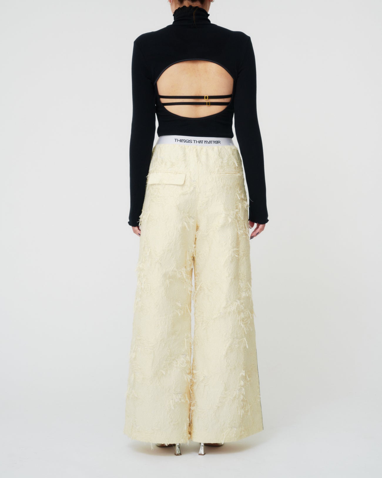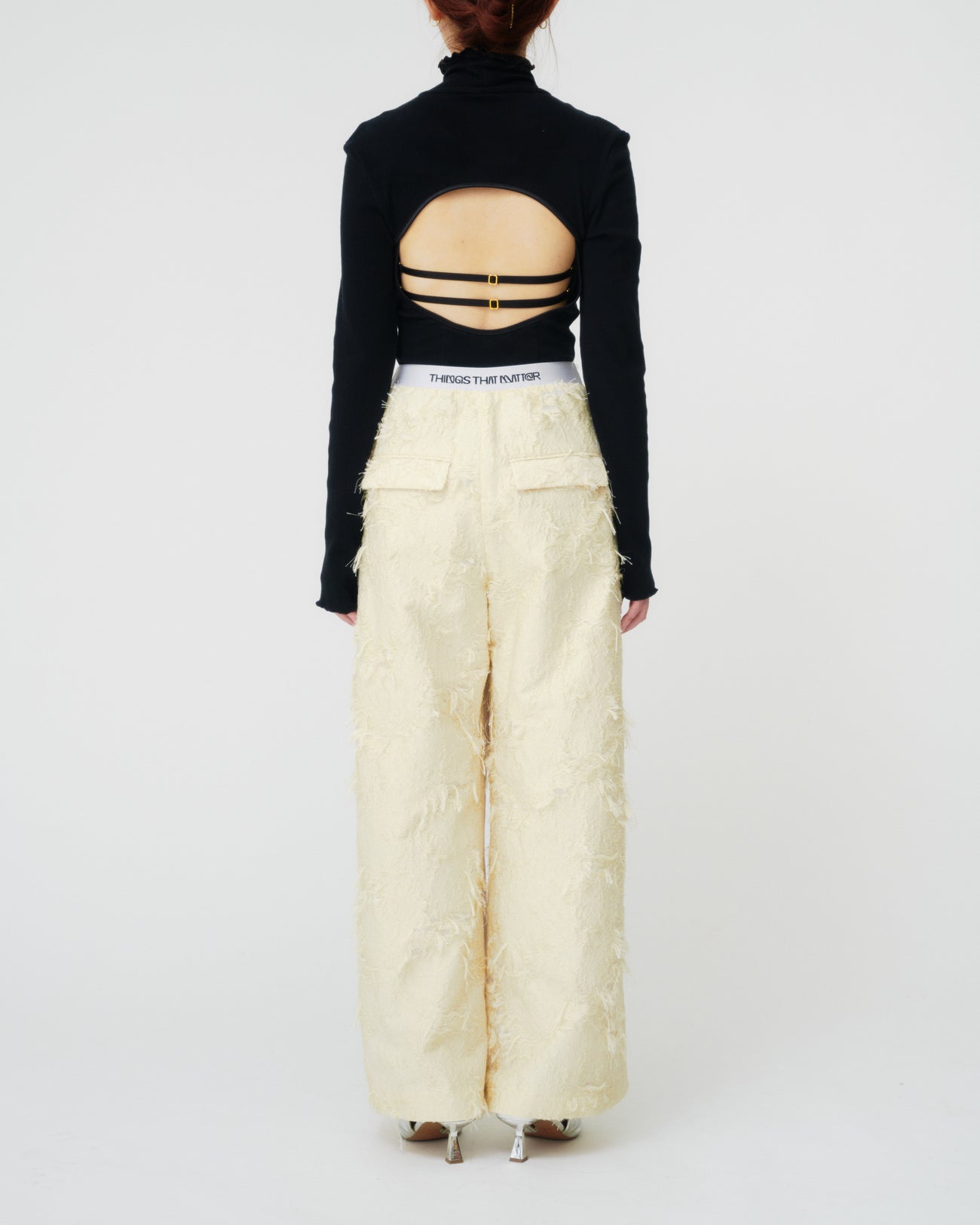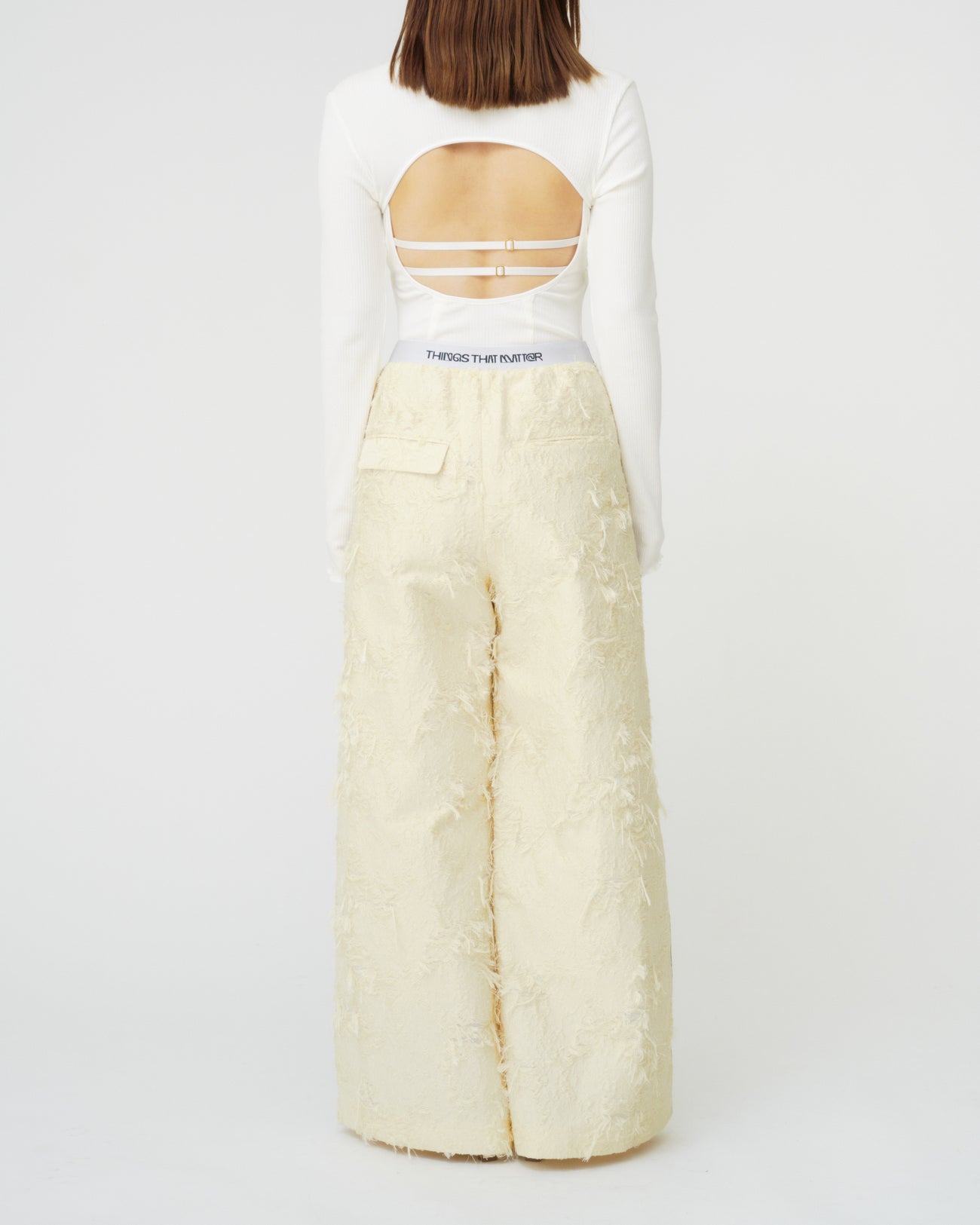 『PRE-SENT』のコンセプトを落とし込んだ異素材使いが印象的なパンツ。