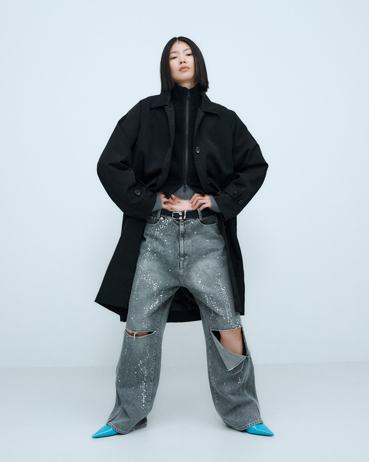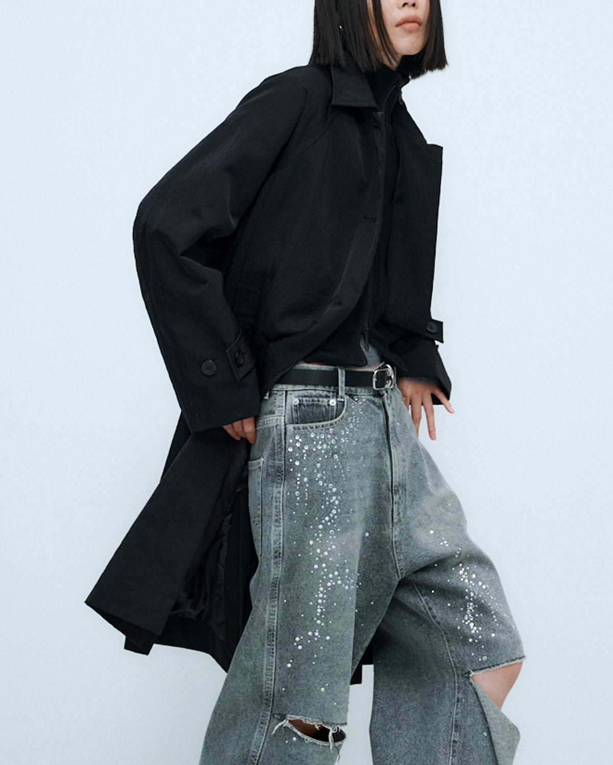 独特なヴィンテージ感を活かしたシンプルなシルエットに、取り外し可能なタートルネックをセットした、遊び心のある一着です。タートルネックにはニット風の厚手カットソー素材を使用し、季節やスタイリングに応じて自在な着こなしが可能。