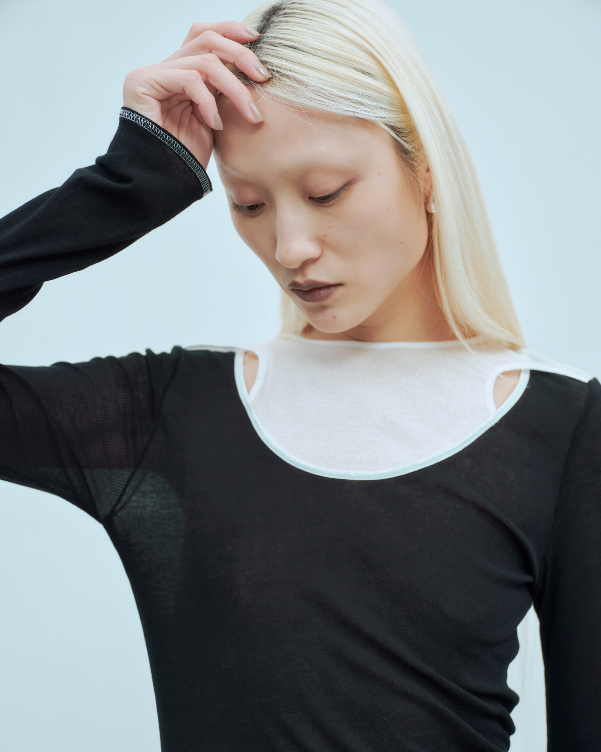 伸縮性に富み上品な透け感を持つ繊細なジャージ素材。