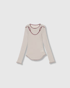 レイヤードデザインが特徴のトップス。程よく上品な透け感があり、春のコーディネートに軽やかさをプラスします。