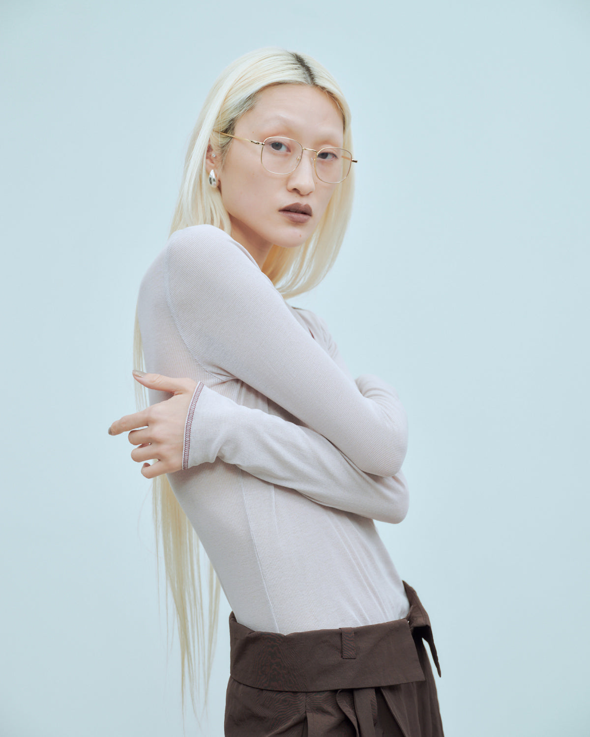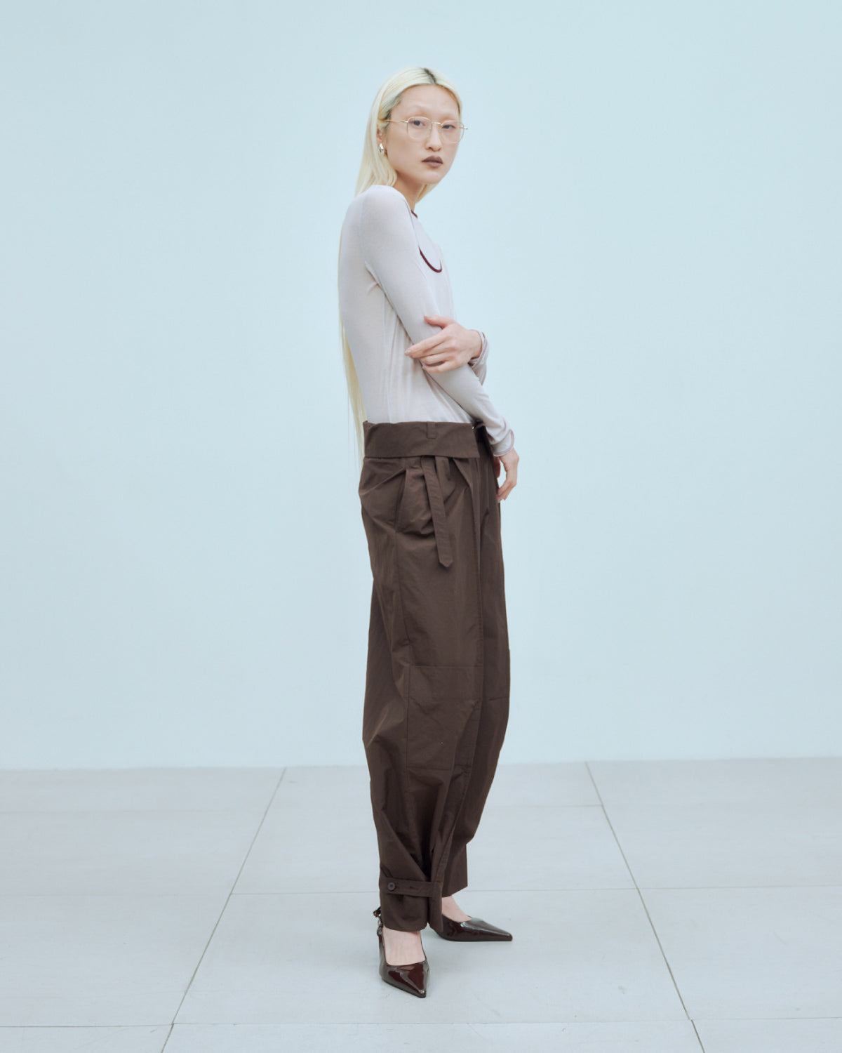 ボリュームのあるボトムと合わせたスタイリングがオススメ。