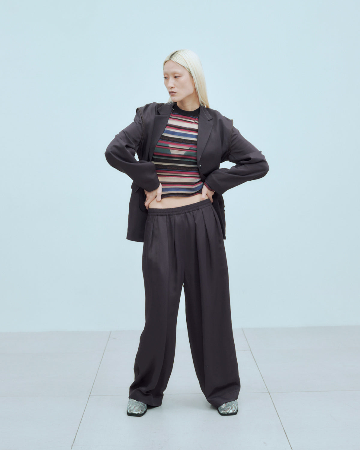 セットアップでの着用はもちろん、単品で取り入れてもリラックス感のあるスタイルに仕上がる一着です。