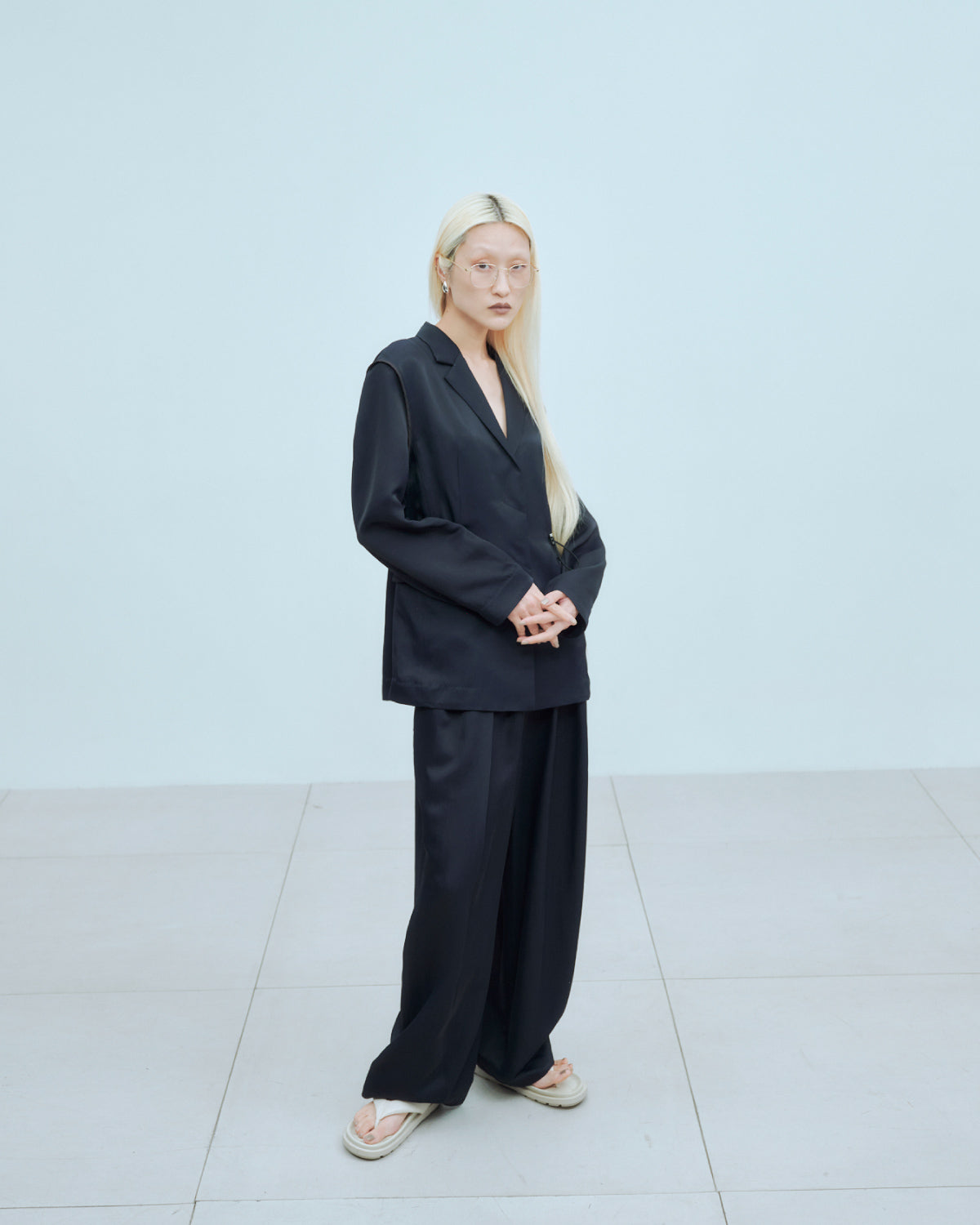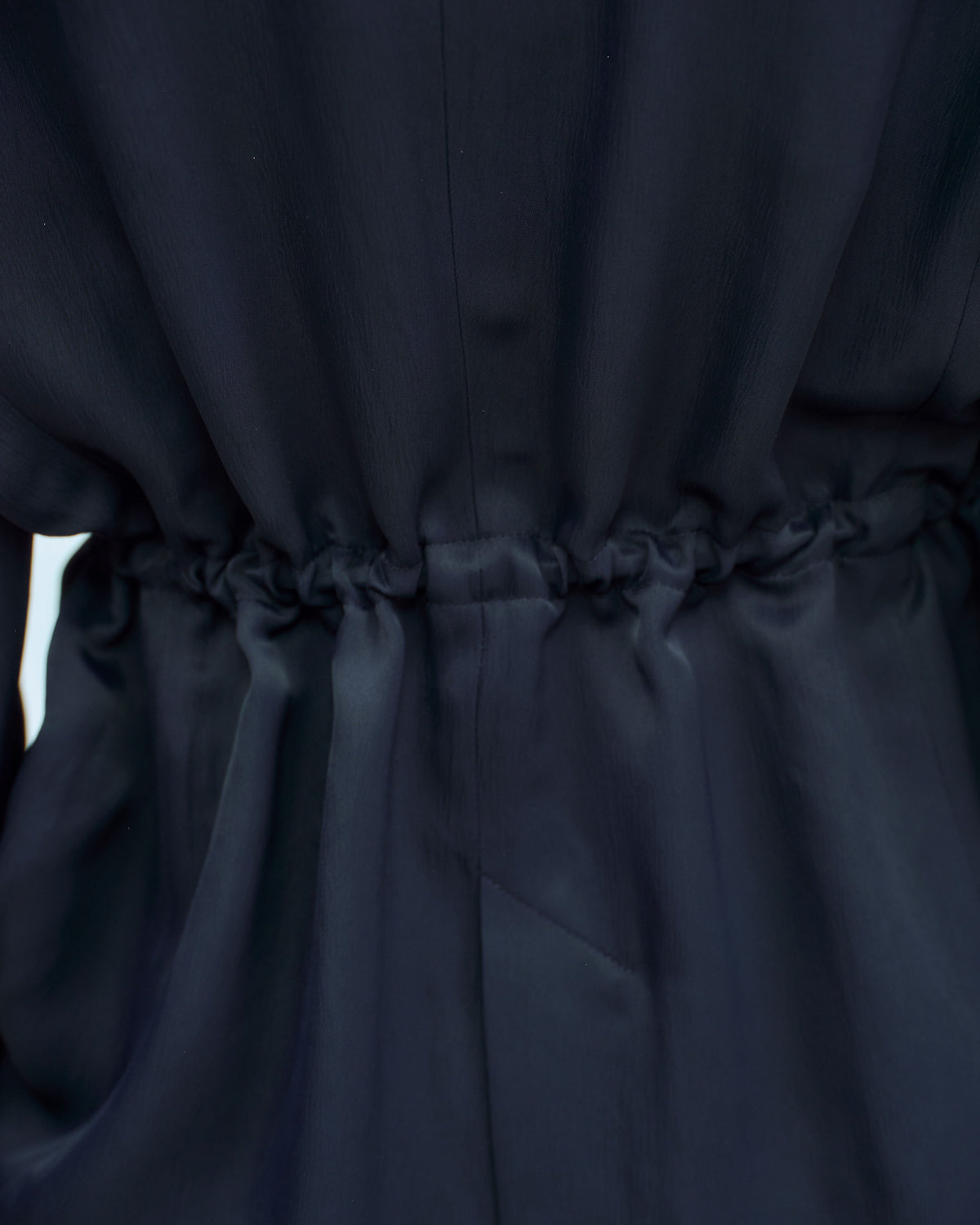 シルクのような上品な光沢、滑らかな肌触り、ドレープ性、軽い着心地が特徴のアセテート素材を使用しています。