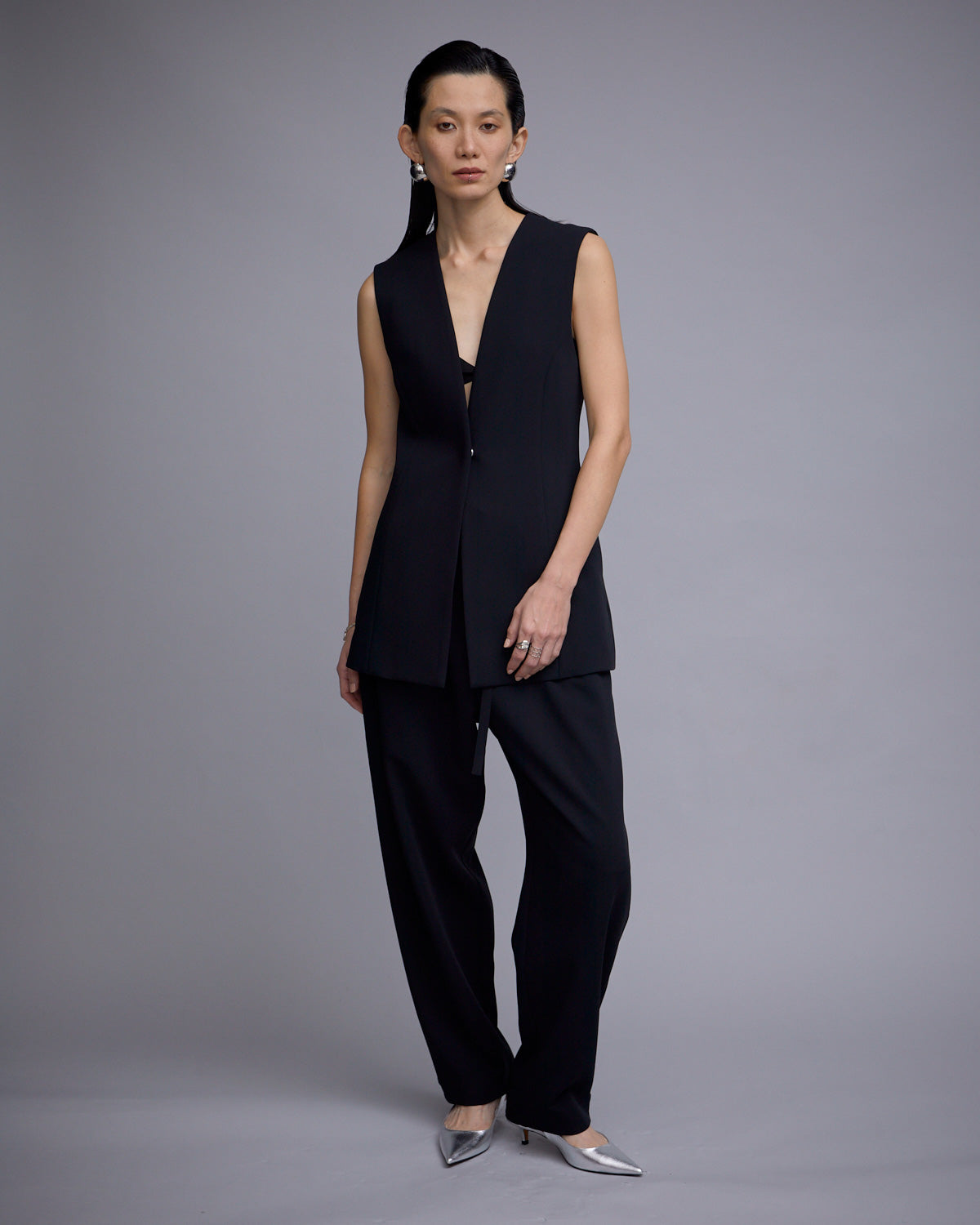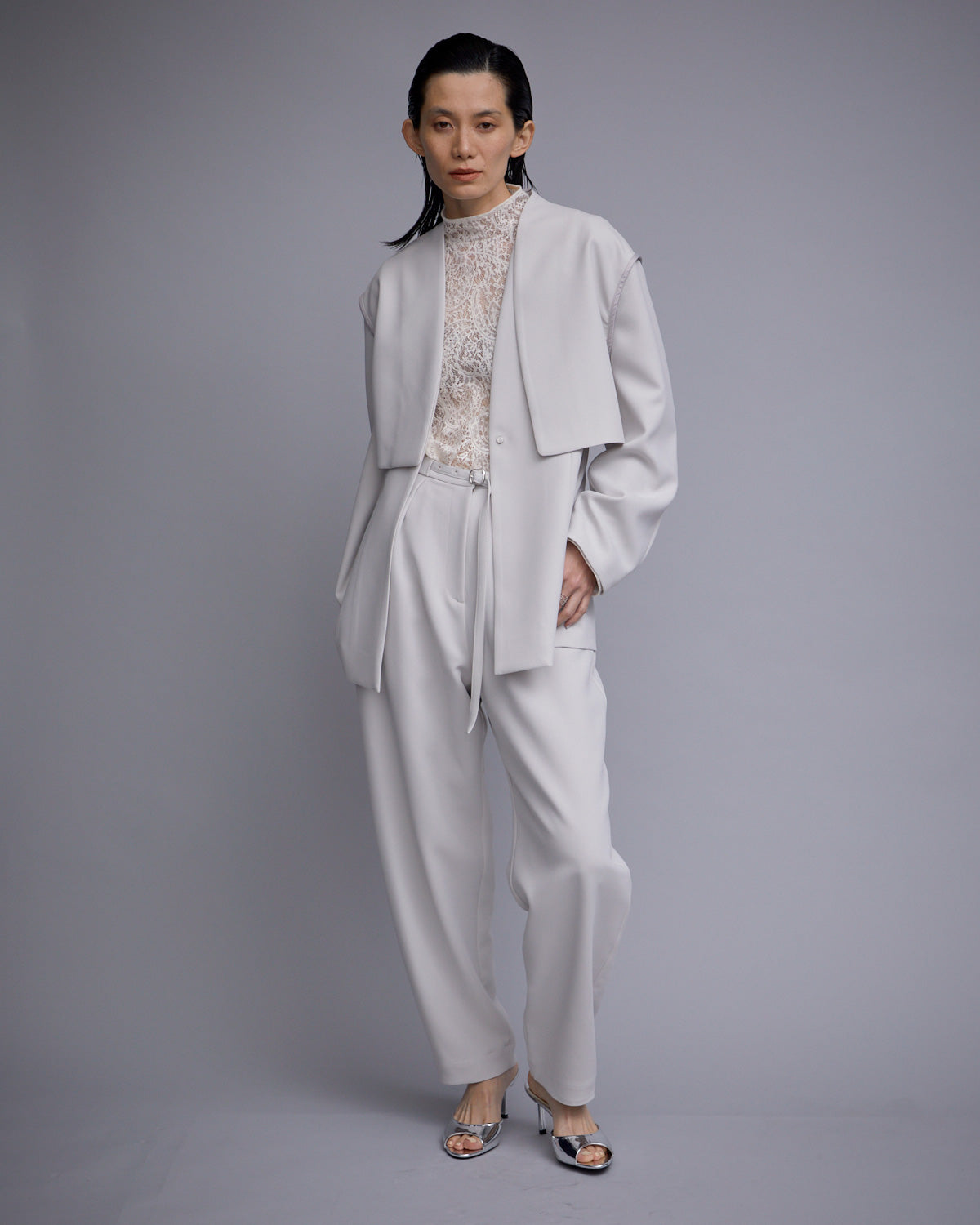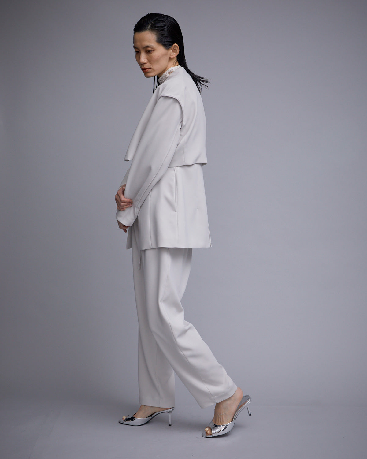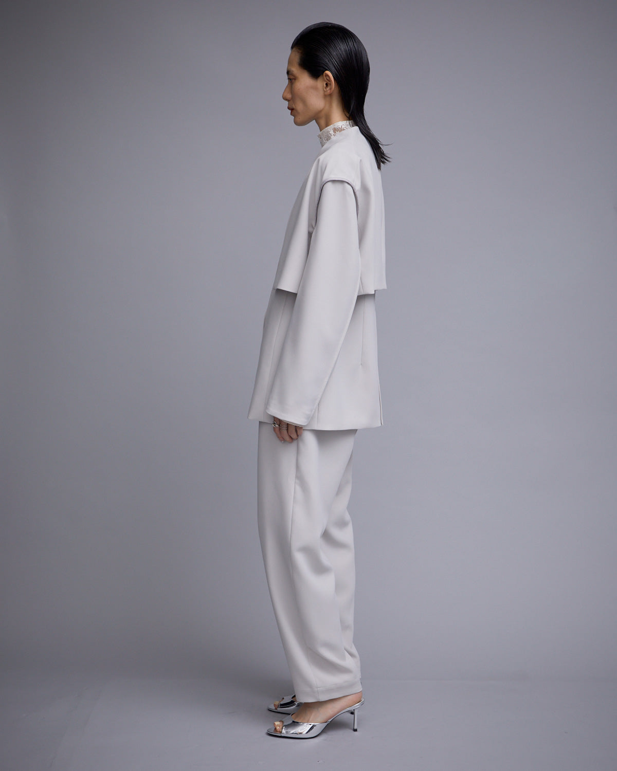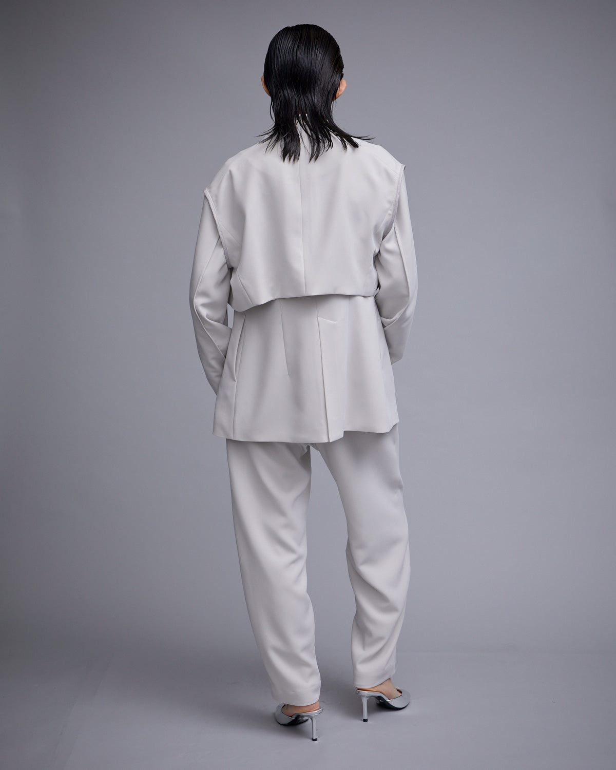 ジャケットとジレがセットになった、同素材の TORIXION LONG GIKET & CROPPED JACKET とセットアップで組み合わせることもでき、様々な着こなしもお楽しみいただけます。